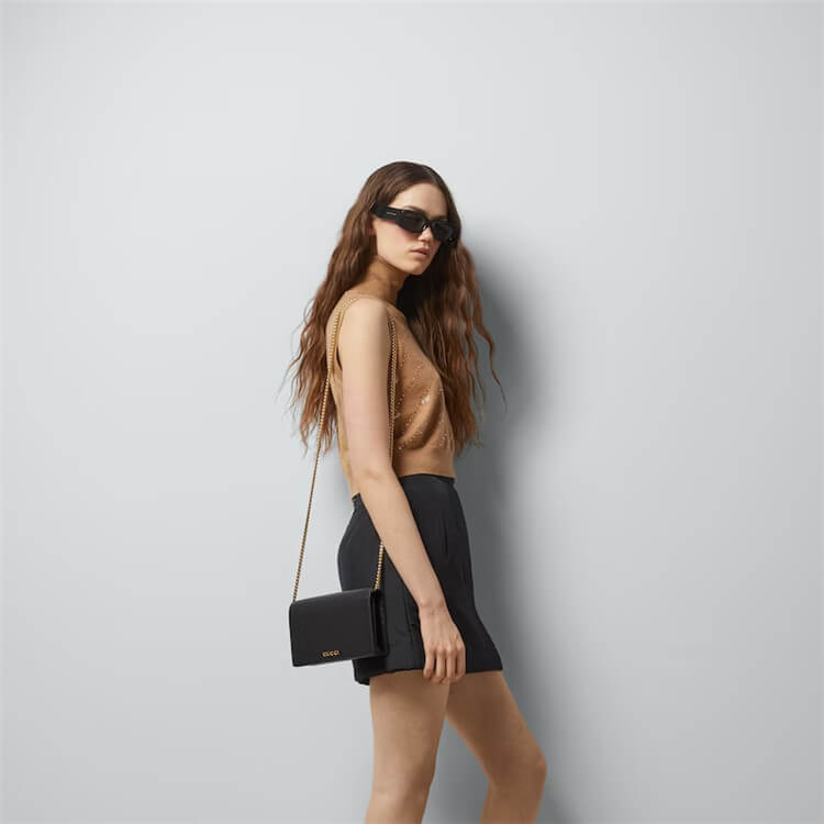 1:1 Mirror QualityReplica Gucci Chain Wallet With Gucci ScriptStyle:772643 0OP0N 1000Black leatherGold-toned hardwareTaffeta liningGucci script detailInside: 6 card slots, 1 flat pocket,1 zip pocket with gusset, 1 open compartmentChain strapSnap button closureW20cm x H12.5cm x D4cm