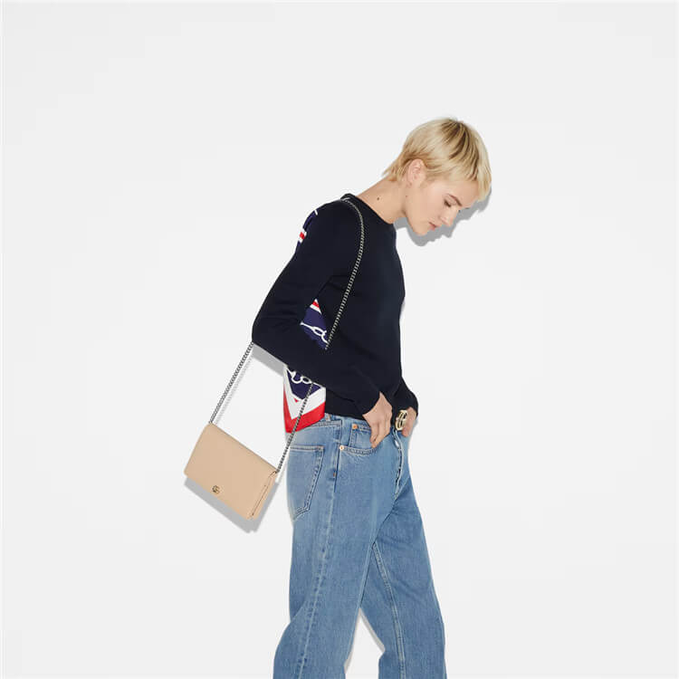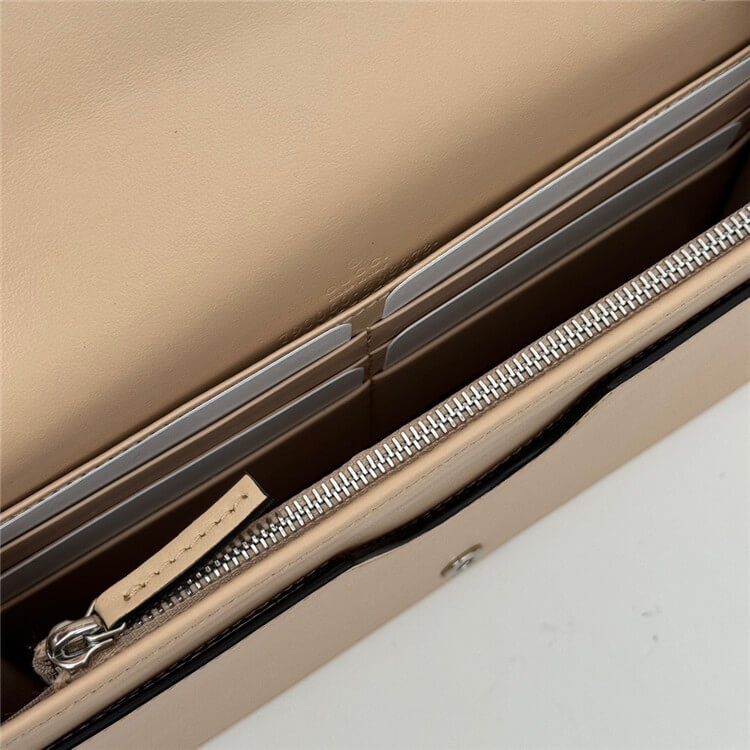 1:1 Mirror QualityReplica Gucci GG Marmont Chain WalletStyle:790060 0QG0G 5701Light beige leatherPalladium-toned hardwareMoiré liningTwo-toned Double GInside: 6 card slots, 1 flat pocket,1 zip pocket with gusset, 1 open compartmentMirrorChain strapSnap button closure7.8″W x 5″H x 1.6″D