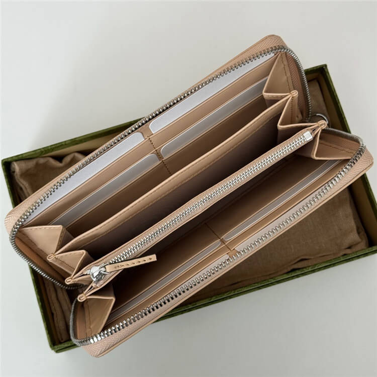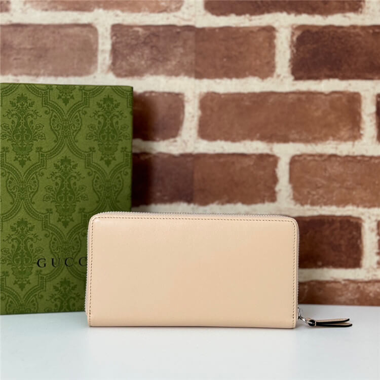 1:1 Mirror Quality Replica Gucci GG Marmont Zip-around Wallet Style:790057 0QG0G 5701 Light beige leather Palladium-toned hardware Moiré lining Two-toned Double G 12 card slots, zipper coin pocket and three bill compartments Zip around closure W19.5cm x H11cm x D3cm