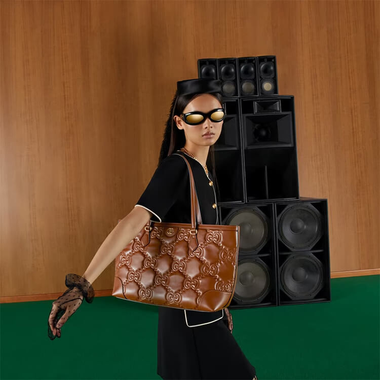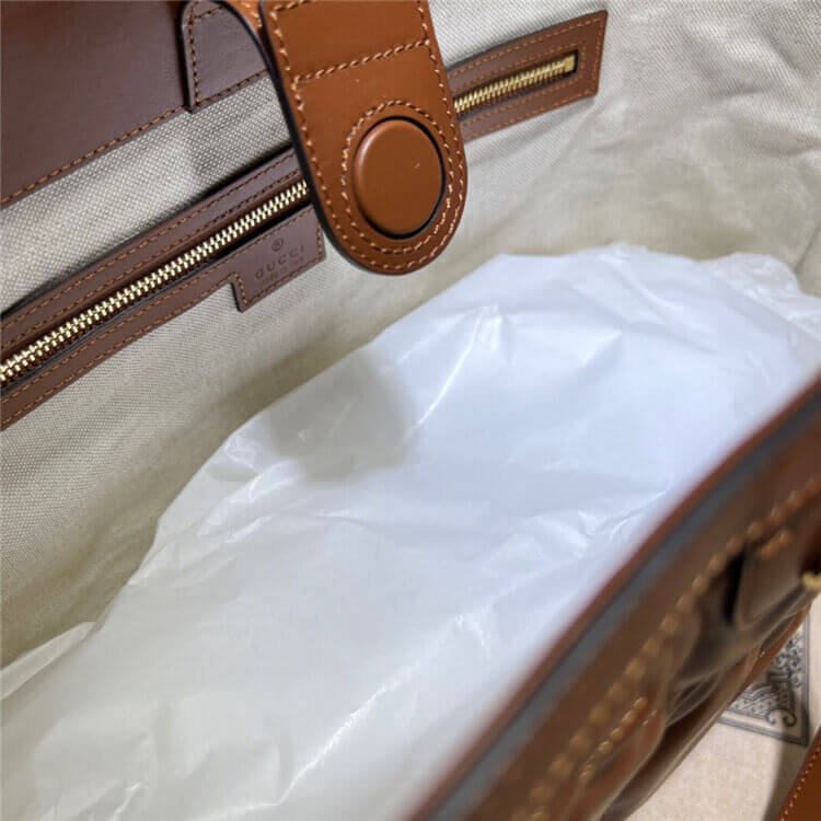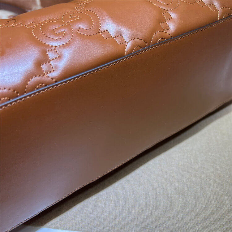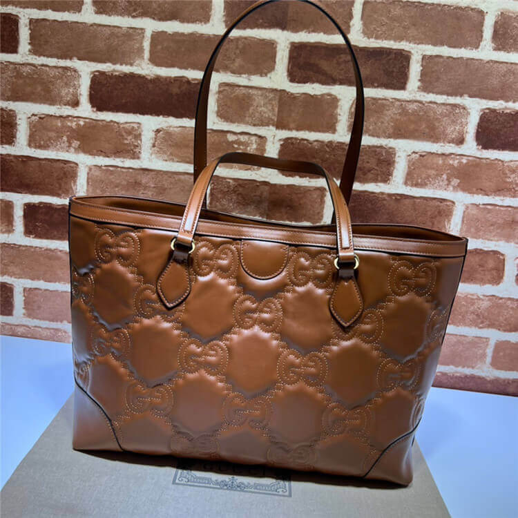 1:1 Mirror Quality Replica Gucci GG Matelasse Medium Tote Style:631685 UM8IG 2546 Light brown GG Matelasse leather Gold-toned hardware Double G Interior zipper pocket Double leather handles with 10″ drop and 21″ length Magnetic snap closure Weight: .71kg approximately Medium size: 15″W x 11″H x 5.5″D