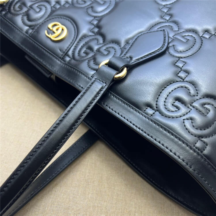 1:1 Mirror Quality Replica Gucci GG Matelasse Medium Tote Style:631685 UM8IG 1000 Black GG Matelassé leather Gold-toned hardware Double G Interior zipper pocket Double leather handles with 25cm drop and 54cm length Magnetic snap closure Weight: .71kg approximately Medium size: W38cm x H28cm x D14cm