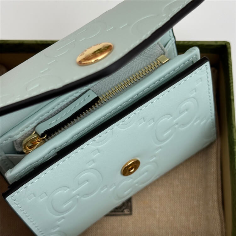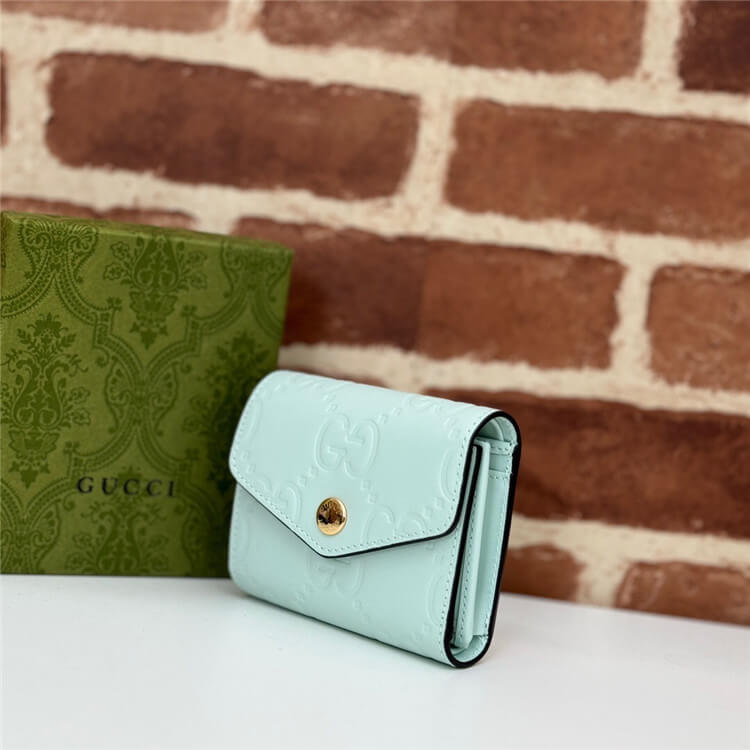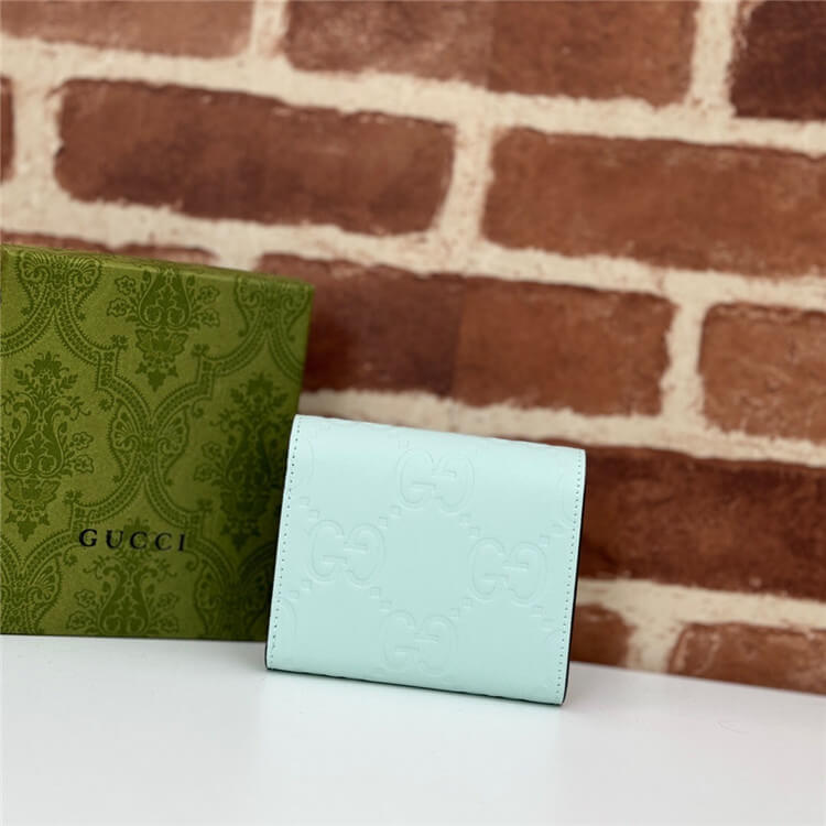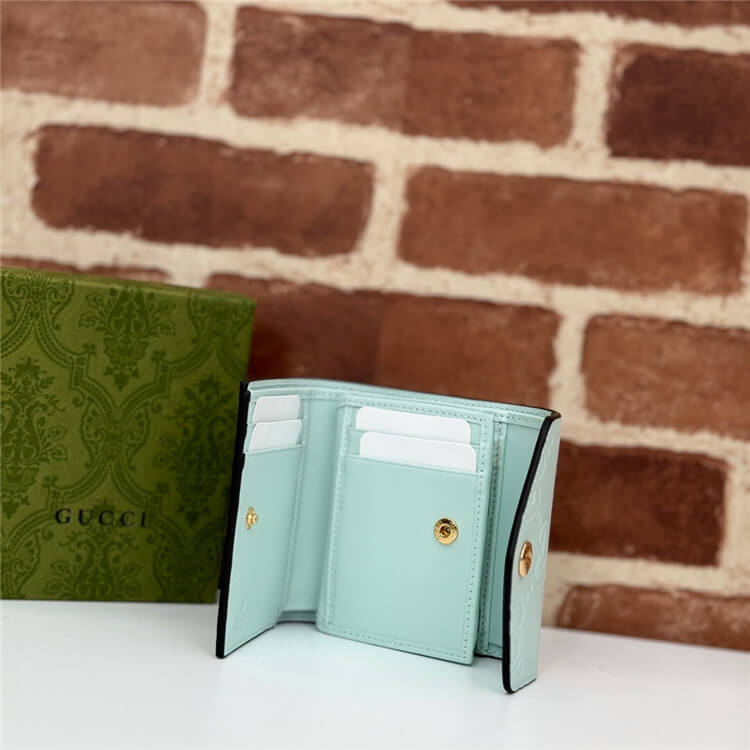 1:1 Mirror QualityReplica Gucci GG Medium WalletStyle:772793 AAC1Q 3401Pale green GG leatherMoiré liningInside: 4 card slots, 1 zip pocket and1 bill compartmentDouble snap button closureOpen: 9.6″W x 4.3″HClosed: 4.3″W x 3.7″H x 1.2″D