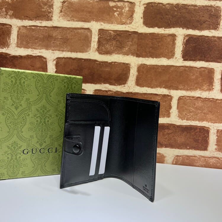 1:1 Mirror Quality Replica Gucci GG Passport Case With Interlocking G Style:724562 92TCF 1000 Black GG Supreme canvas Black leather trim Interior: passport pocket, 3 open pockets, and 3 card slots Snap-button closure Closed: 4.1″W x 5.7″H Open: 8.1″W x 5.7″H