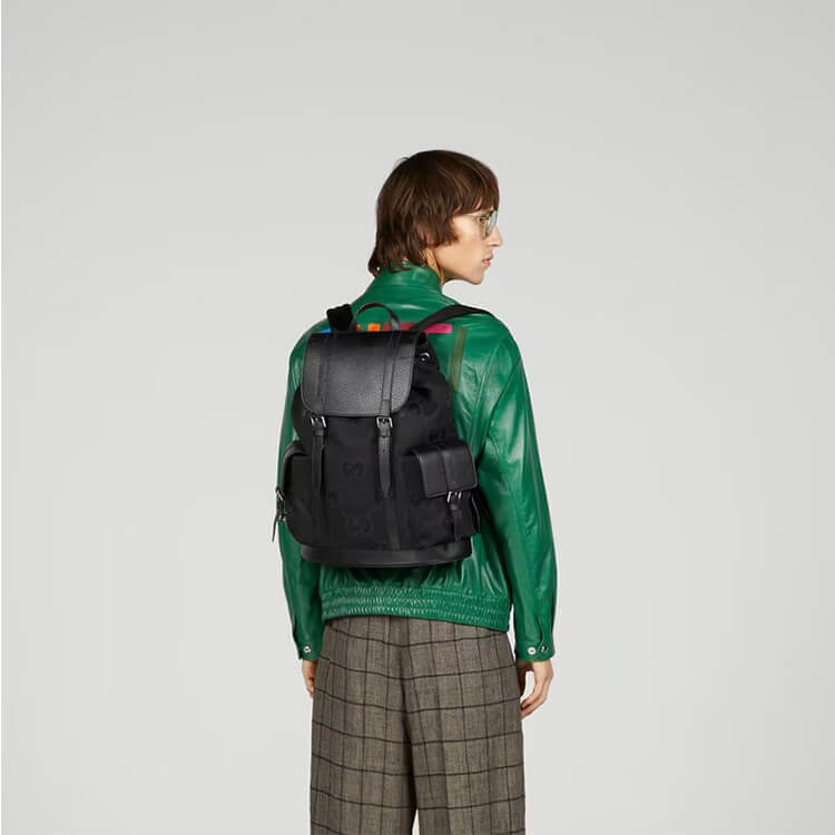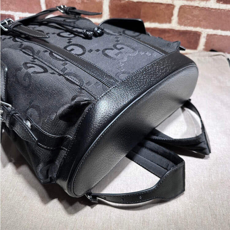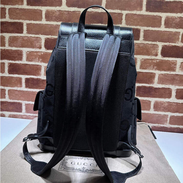 1:1 Mirror Quality Replica Gucci Jumbo GG Backpack Style:678829 FABRX 1000 Black jumbo GG canvas Black leather trim Cotton linen lining Padded straps Inside: 1 padded laptop case Outside: 2 pockets with magnetic closure Top handle with 2.7″ drop 13.4″ x 16.5″ x 6.3
