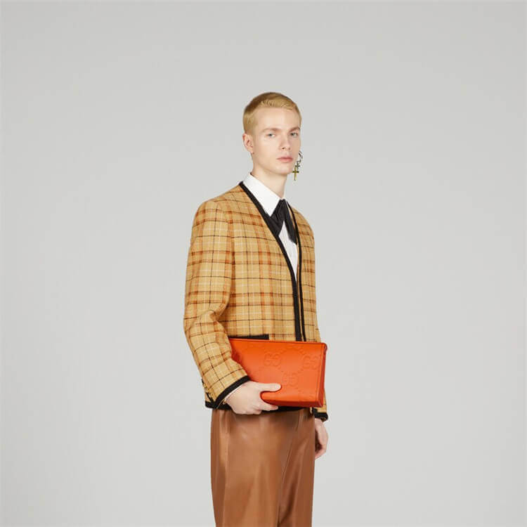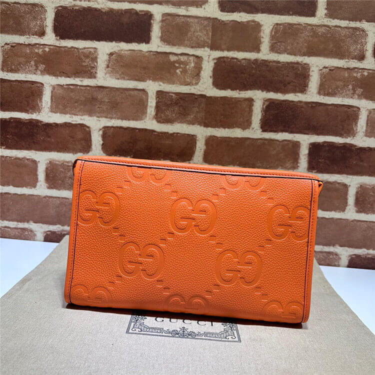 1:1 Mirror QualityReplica Gucci Jumbo GG PouchStyle:739490 AABY0 7505Orange jumbo GG leatherMoire liningInside: 2 card slotsZip closureW28.5cm x H18cm x D9cm