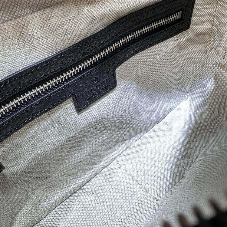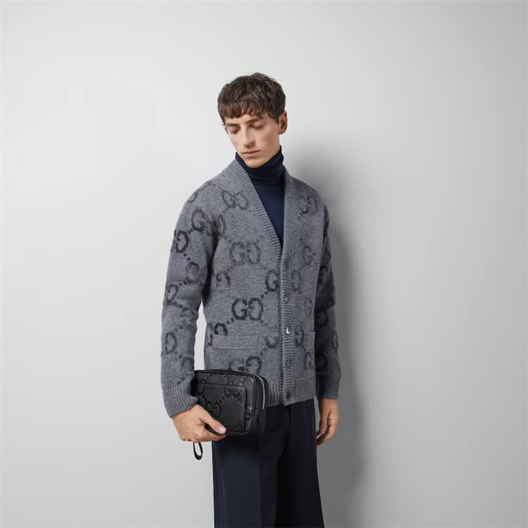 1:1 Mirror Quality Replica Gucci Jumbo GG Pouch Style:760224 AABY0 1000 Black jumbo GG leather Cotton linen and moiré lining Outside: 4 card slots under magnetic flap closure Detachable wrist strap with 13cm drop Zip closure W23.5cm x H14.5cm x D6 cm