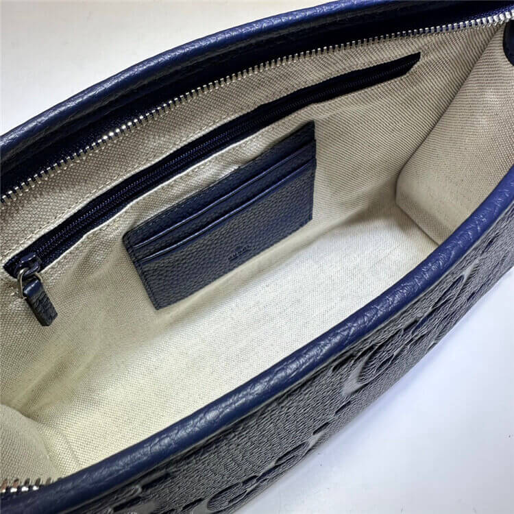 1:1 Mirror QualityReplica Gucci Jumbo GG PouchStyle:739490 AABY0 4236Blue Jumbo GG leatherMoiré liningInside: 2 card slotsZip closureW28.5cm x H18cm x D9cm
