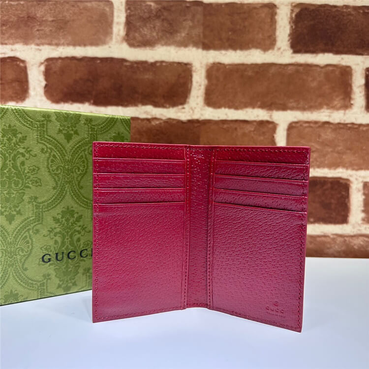 1:1 Mirror Quality Replica Gucci Long Card Case With GG Detail Style:768249 FACQC 9752 Beige and ebony GG Supreme canvas Red leather trim Brass hardware with red ceramic-effect finishing Moiré lining GG detail Inside: 8 card slots Open: 5.9″W x 4.7″H Closed: 2.9″W x 4.7″H