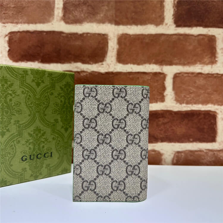 1:1 Mirror Quality Replica Gucci Long Card Case With GG Detail Style:768249 FACQC 9753 Beige and ebony GG Supreme canvas Green leather trim Brass hardware with green ceramic-effect finishing Moiré lining GG detail Inside: 8 card slots Open: 5.9″W x 4.7″H Closed: 2.9″W x 4.7″H