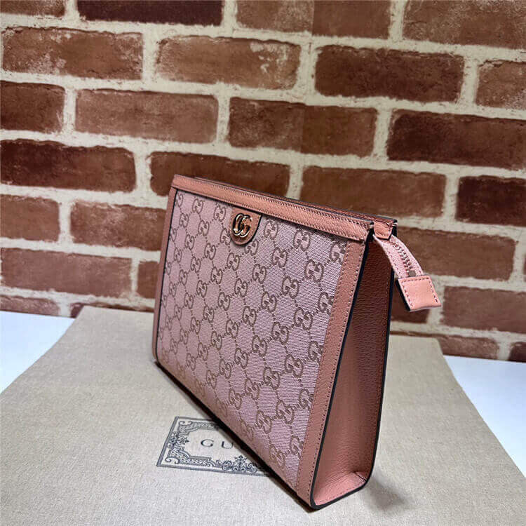 1:1 Mirror QualityReplica Gucci Ophidia GG PouchStyle:625549 FACC7 5748Pink GG canvasPink leather trimRose gold hardwareMoiré liningDouble GInterior: 1 open pocketZipper closure10.6″W x 8.3″H x 2.75″D