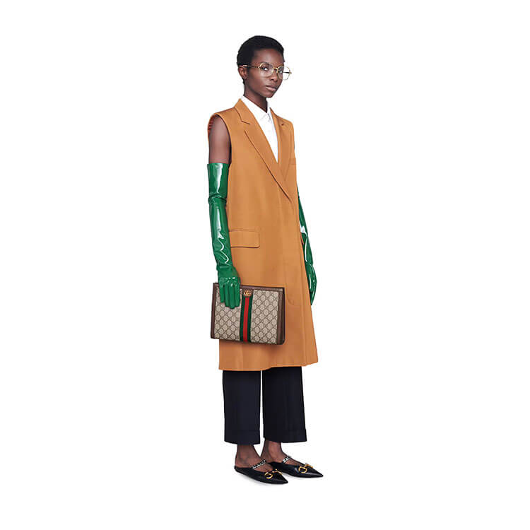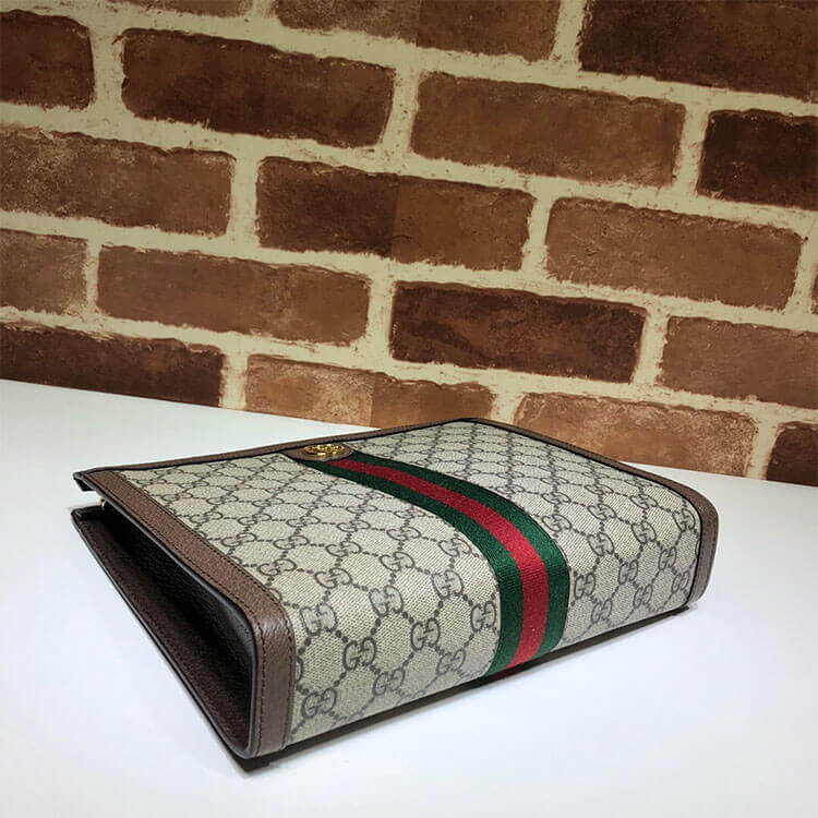 1:1 Mirror Quality Replica Gucci Ophidia Pouch Style:625549 96IWG 8745 Beige/ebony GG Supreme canvas,with brown leather trim Green and red Web Gold-toned hardware Microfiber and viscose lining Double G Interior: 1 open pocket Zipper closure 10.6″W x 8.3″H x 2.75″D The model is 5’1″ tall