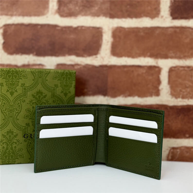 1:1 Mirror Quality Replica Gucci Wallet With GG Detail Style:768243 FACQC 1049 Black GG Supreme canvas Dark green leather interior Brass hardware with dark grey ceramic-effect finishing Moiré lining GG detail Inside: 8 card slots and 2 bill compartments Closed: W11cm x H9cm Open: W21cm x H9cm