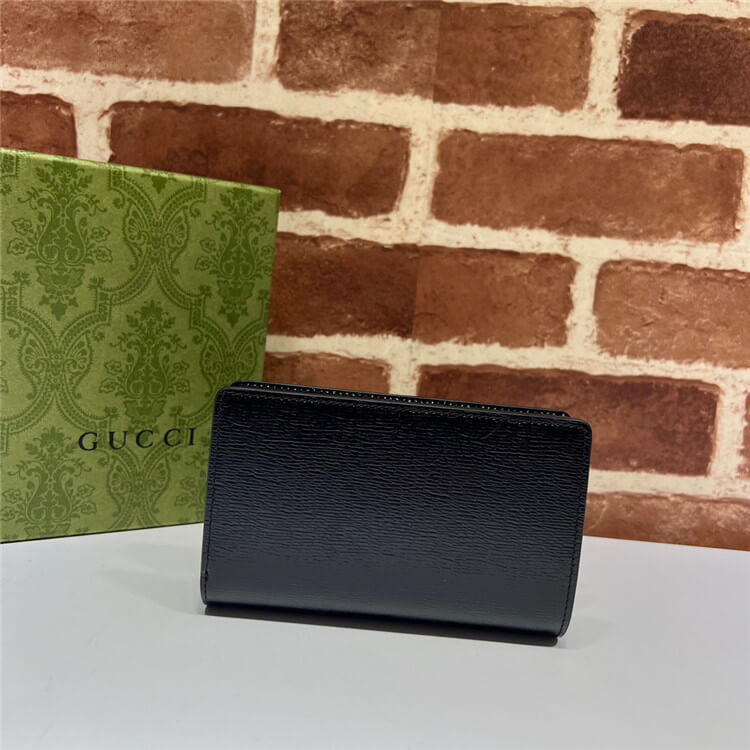 1:1 Mirror Quality Replica Gucci Zip Around Wallet With Gucci Script Style:772640 0OP0N 1000 Black leather Gold-toned hardware Taffeta lining Gucci script detail Inside: 10 card slots, 1 bill compartment and 1 zip pocket Zip closure W18.5cm x H14cm x D3cm