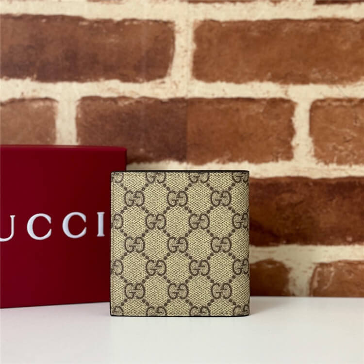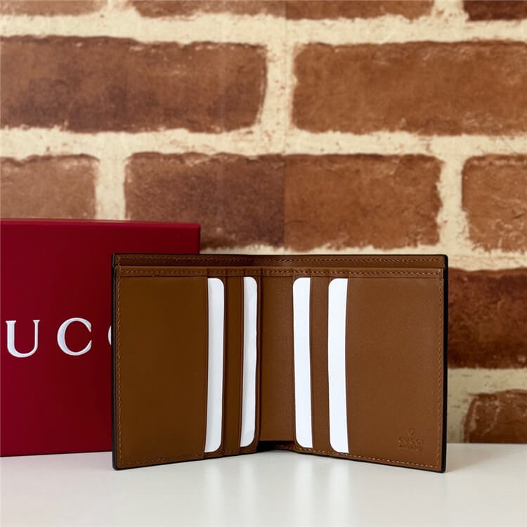 1:1 Mirror Quality Replica Gucci GG Emblem Bi-Fold Wallet Style:821206 FAED0 9786 Beige and dark brown new GG Monogram coated fabric Brown leather interior Inside: 8 card slots and 1 bill compartment Weight: 60g approximately Closed: W10cm x H10cm; Open: W20cm x H10cm
