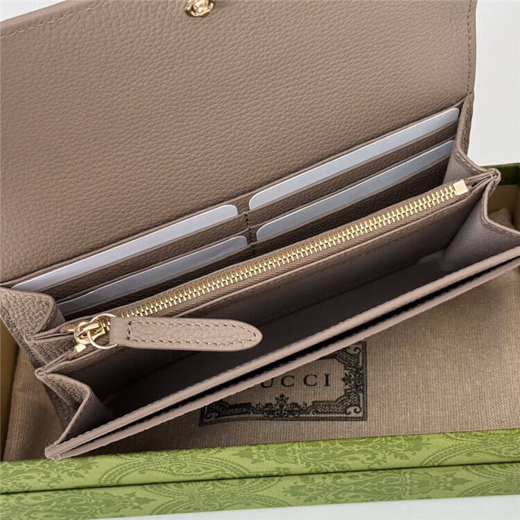 1:1 Mirror QualityReplica Gucci GG Emblem Continental WalletStyle:815922 AAEEM 1523Taupe GG grainy leatherTaffeta liningInside: 6 card slots, 2 bill compartments,1 open pocket and 1 coin pocketOutside: open pocket near closureSnap button closureW19cm x H11cm x D3cmWeight: 200g approximately
