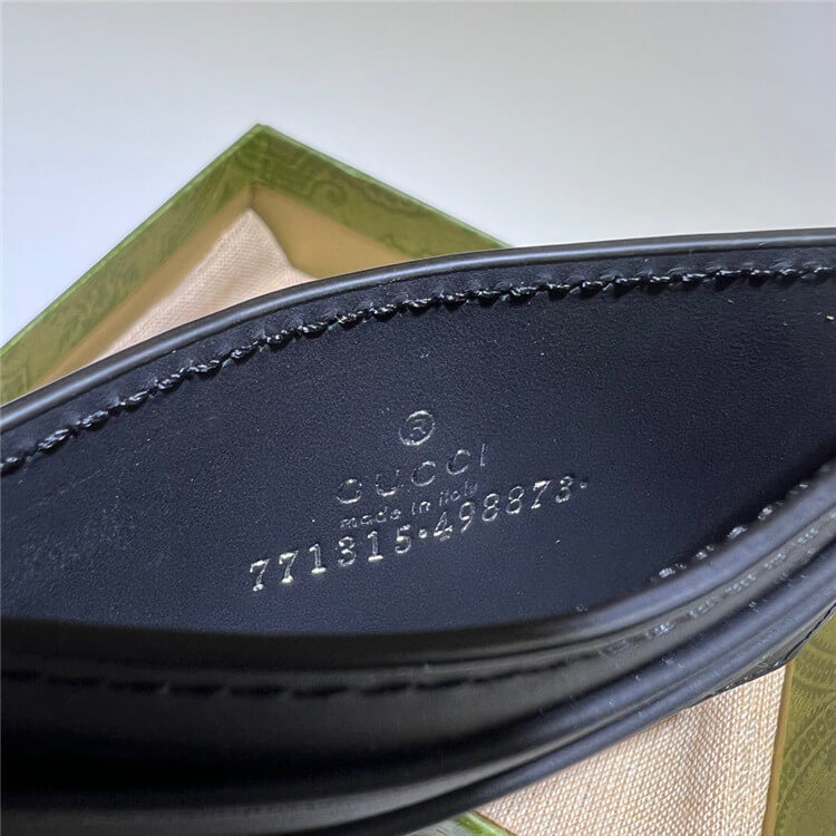 1:1 Mirror QualityReplica Gucci GG Rubber-Effect Card CaseStyle:771315 AAC0L 1000Black GG rubber-effect leatherMoiré liningFour card slots, one open pocket4.3″W x 2.7″H