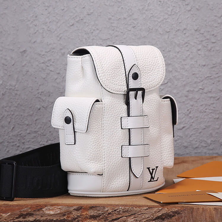 1:1 Mirror Quality Replica LV Christopher XS Style:M58493 Size:5.5”W x 7.7”H x 2”D White Taurillon leather Cowhide leather trim Textile lining Tone-on-tone hardware Signature snap closures Large main compartment 2 side pockets Strap: Removable, adjustable Strap drop: 20.5 inches Strap drop max: 28.3 inches
