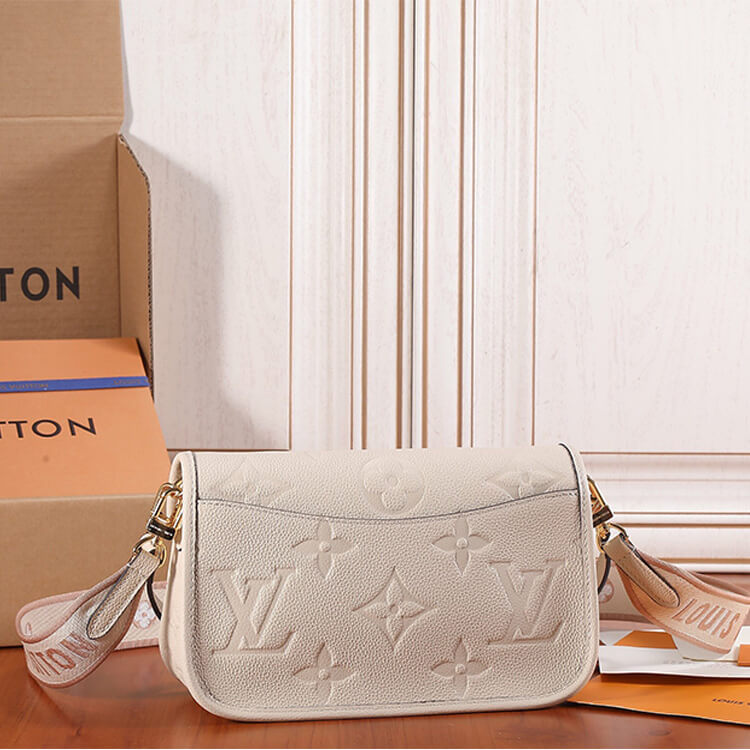 1:1 Mirror QualityReplica LV DianeStyle:M4638823 x 16 x 8.5 cmCreme BeigeEmbossed supple grained cowhide leatherSupple grained cowhide-leather trimMicrofiber liningGold-color hardwareHook closureInside flat zipped pocketStrap: Removable, not adjustableStrap drop:43.0 cmHandle: Single, removable