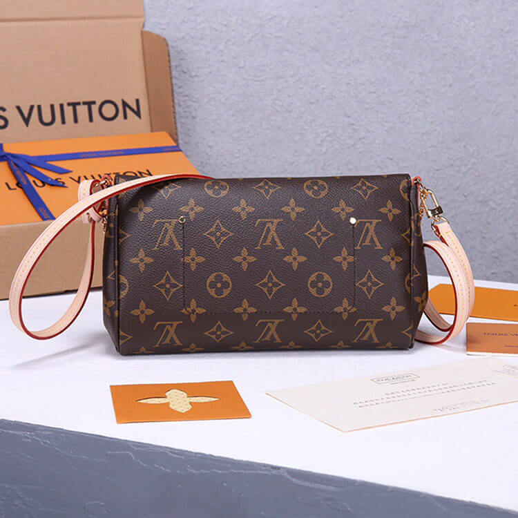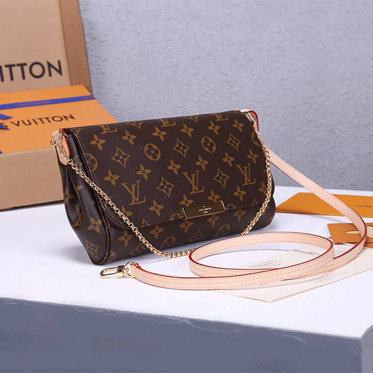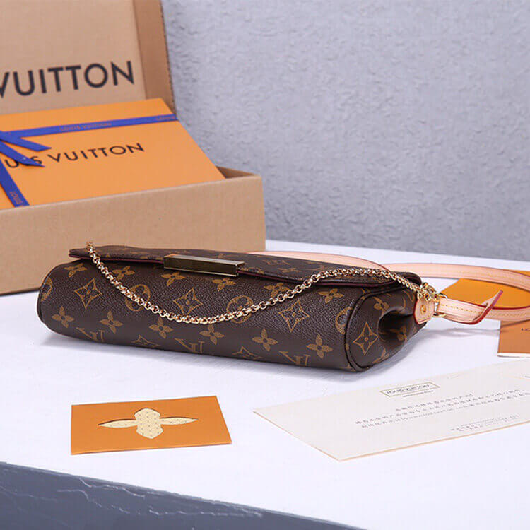 1:1 Mirror QualityReplica LV Favorite MMStyle:M40718Size:11”W x 6.7”H x 1.6”DMonogram coated canvasNatural cowhide trimTextile liningGold-color hardwareMagnetic flap closureInside flat pocketStrap:Not removable, not adjustableStrap drop: 20.5 inchesChain:RemovableChain drop: 6.7 inches
