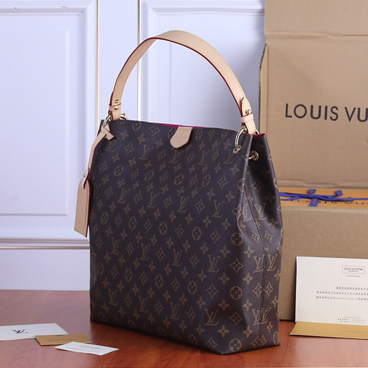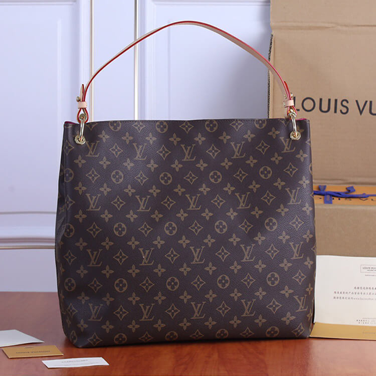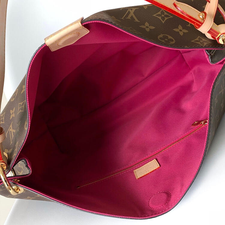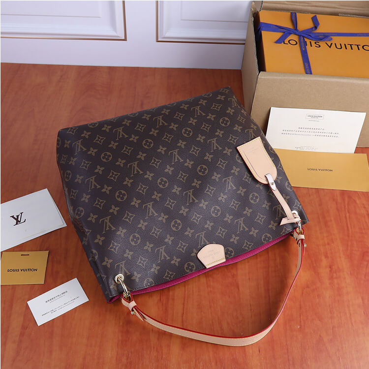1:1 Mirror Quality Replica LV Graceful MM Style:M43703 Size:16.1”W x 13.8”H x 5.5”D Pivoine Pink Monogram coated canvas Natural cowhide-leather trim Textile lining Gold-color hardware Leather tab magnetic closure Name tag Zipped inside pocket Handle:Single