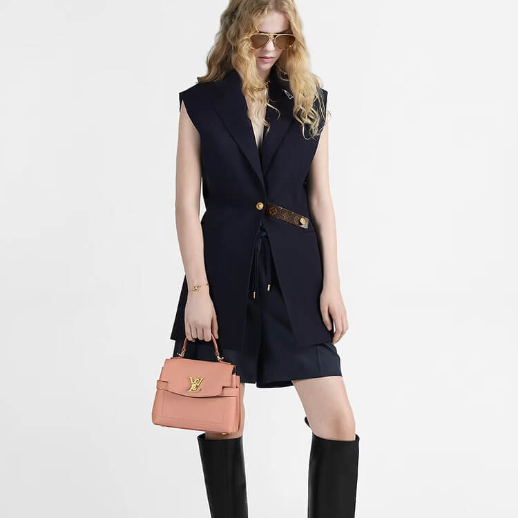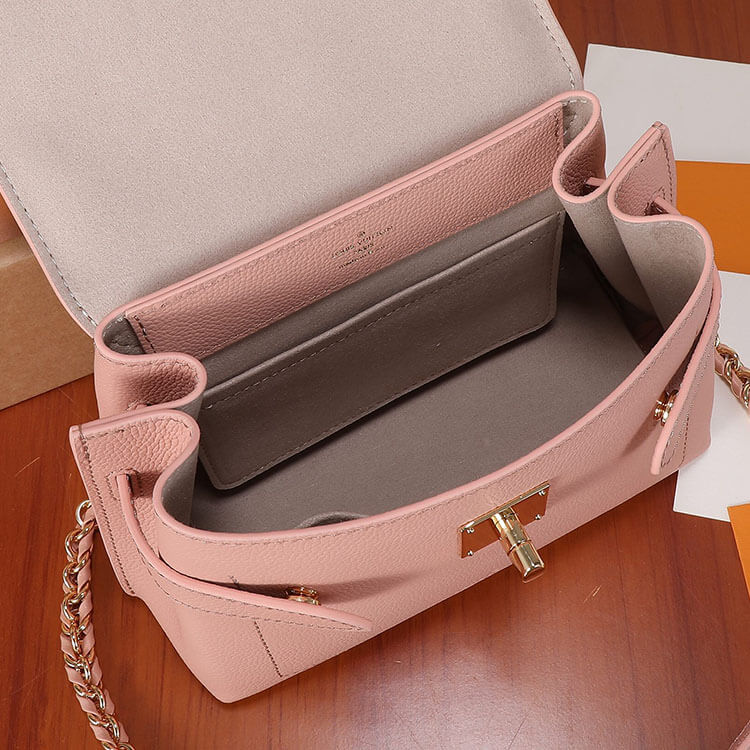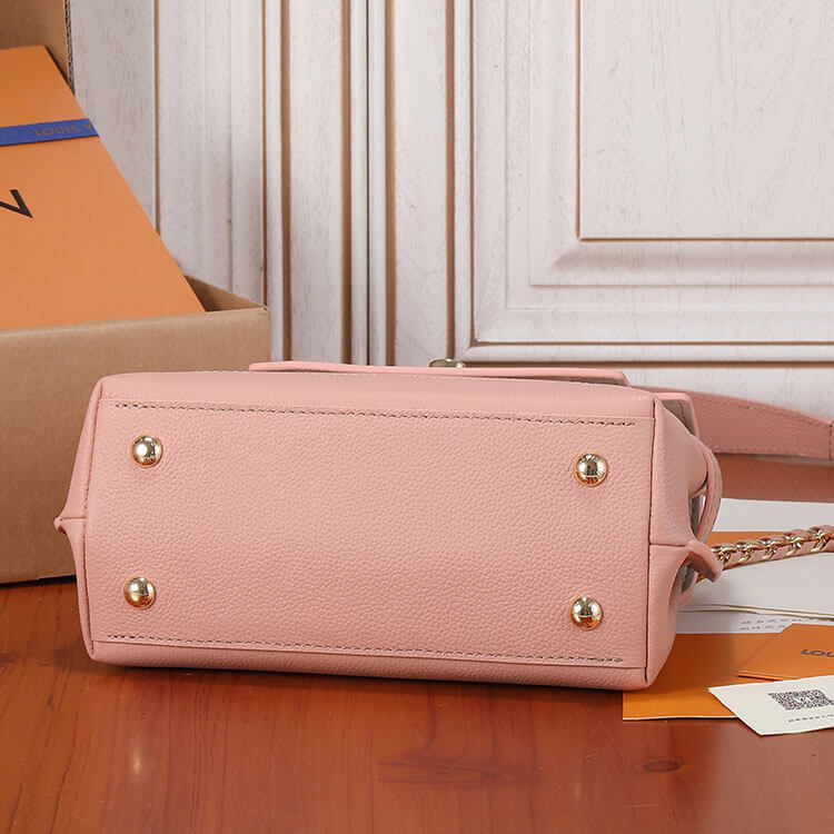 1:1 Mirrror Quality Replica LV LockMe Ever Mini Style:M21088 23 x 17 x 10 cm Rose Trianon Pink Grained calf leather Grained calf-leather trim Microfiber lining Gold-colour hardware 2 inside flat pockets 4 protective metal bottom studs Strap: Removable, not adjustable Strap drop:48.0 cm Handle: Single