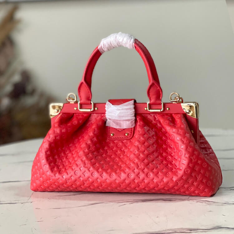 1:1 Mirror Quality Replica LV Monogram Clutch Style:M22327 28 x 14 x 10 cm Red Calfskin leather Calfskin-leather trim Microfiber lining Gold-color hardware Inside back flat pocket Magnetic clasp closure with S-Lock Retractable rotating chain mounts Chain: Removable Chain Drop: 30.0 cm Handle: Single