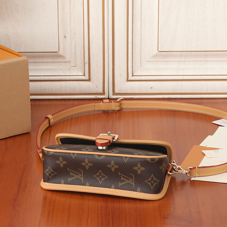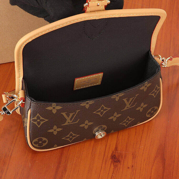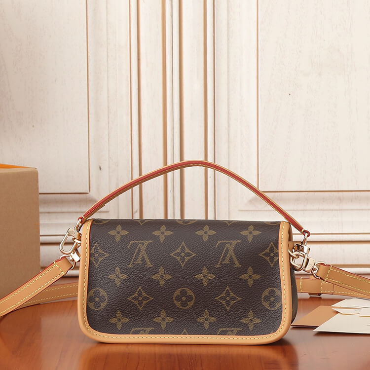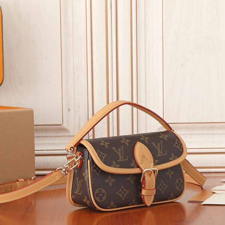 1:1 Mirror QualityReplica LV Nano DianeStyle:M832987.5 x 4.1 x 2.4 inches(length x Height x Width)Monogram coated canvasNatural cowhide-leather trimMicrofiber liningGold-color hardwareMagnetic closureStrap:Removable, adjustableStrap drop:16.9 inchesStrap drop max:20.1 inchesHandle:Single