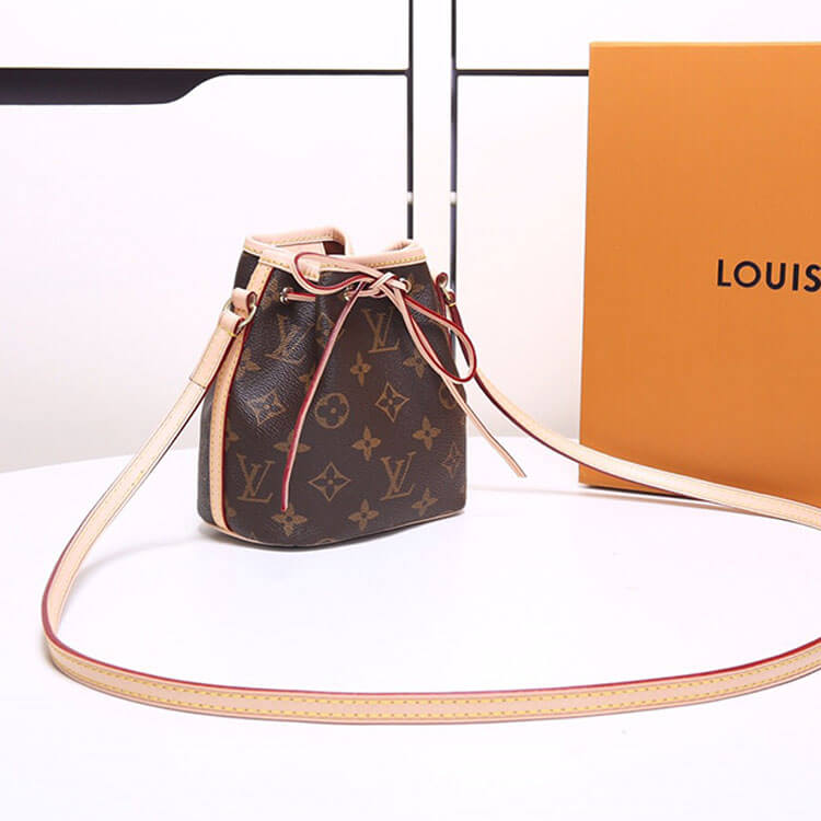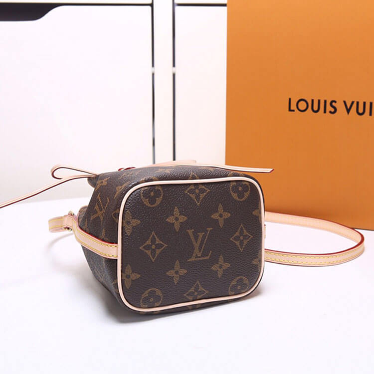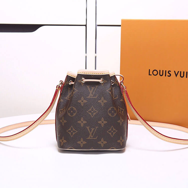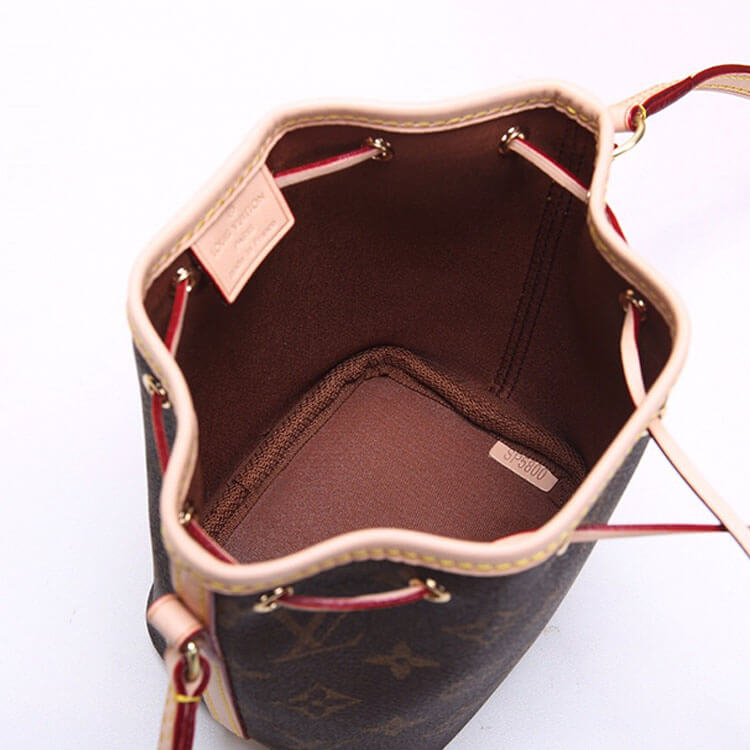 1:1 Mirror QualityReplica LV Nano NoeStyle: M41346Size: 5.1”W x 5.9”H x 3.5”DMonogram coated canvasNatural cowhide-leather trimTextile liningGold-color hardwareLeather-drawstring closureLeather thread closureStrap:Not removable, not adjustableStrap drop: 21.7 inches