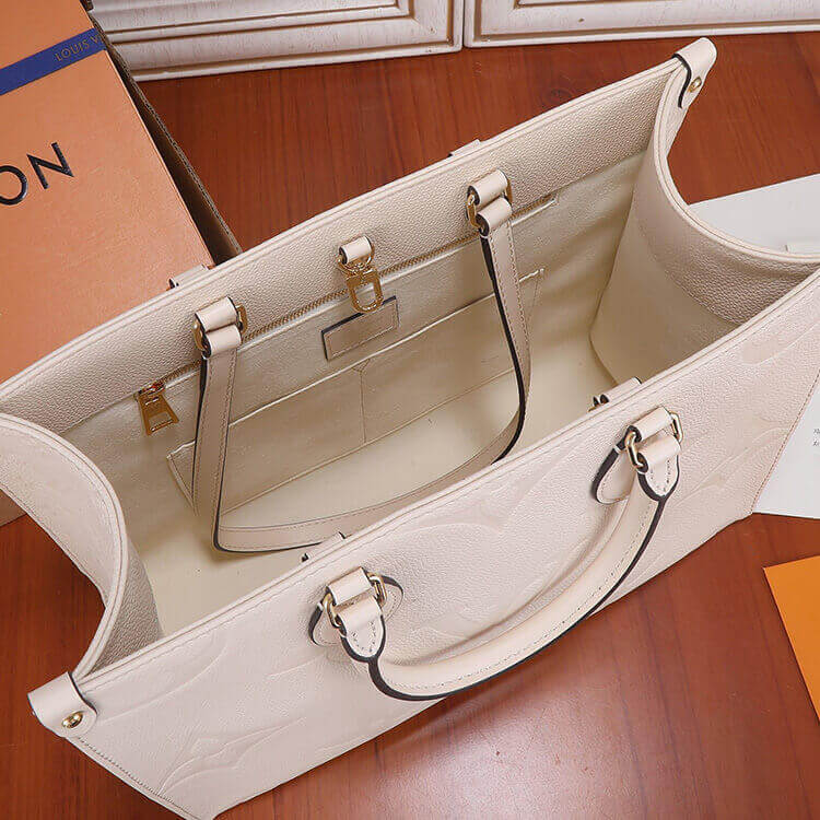 1:1 Mirror QualityReplica LV OnTheGo MMStyle:M4653113.8 x 10.6 x 5.5 inches(length x Height x Width)Cr猫me BeigeEmbossed grained cowhide leatherCowhide-leather trimMicrofiber liningGold-color hardwareHook closureInside flat zipped pocketInside double pocketHandle:Double