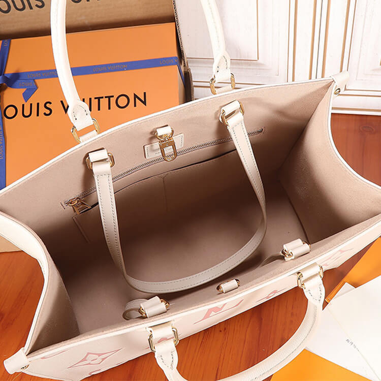 1:1 Mirror QualityReplica LV OnTheGo MMStyle:M2157535 x 27 x 14 cmCreme Beige / Rose Trianon PinkEmbossed supple grained cowhide leatherSupple grained cowhide-leather trimMicrofiber liningGold-color hardwareHook closureInside flat zipped pocketInside double pocketHandle: Double