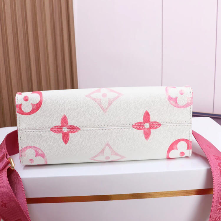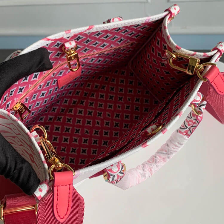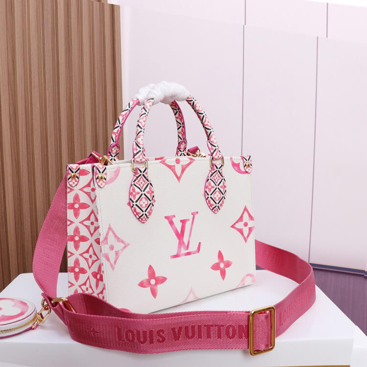 1:1 Mirror QualityReplica LV OnTheGo PMStyle:M22976Size:9.8 x 7.5 x 4.5 inchesPinkMonogram coated canvasTextile liningGold-color hardwareD-ringInside flat zipped pocketInside double pocket4 riveted corner tabsStrap:Removable, adjustableStrap drop: 13.9 inchesStrap drop max: 20.9 inchesHandle:Double