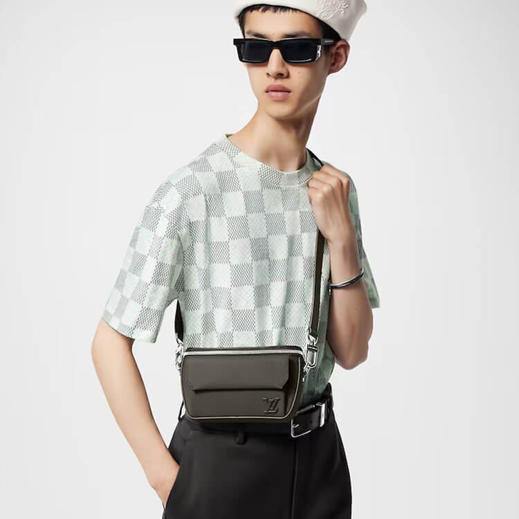 1:1 Mirror Quality Replica LV Pilot Wearable Wallet Style:M83560 20 x 12 x 5.5 cm (length x height x width ) Kaki Cowhide leather Cowhide-leather trim Textile lining Silver-color hardware Zip closure Outside flap pocket Strap : Removable, adjustable Strap Drop : 44.0 cm Strap Drop Max. : 55.0 cm