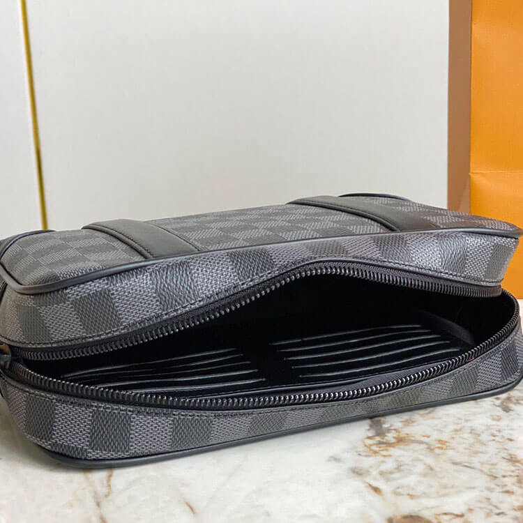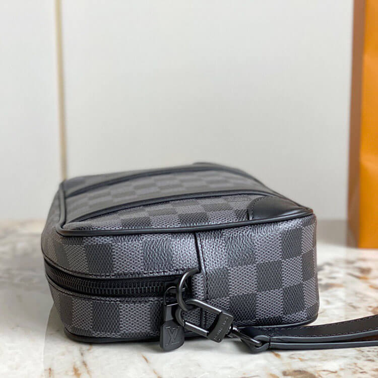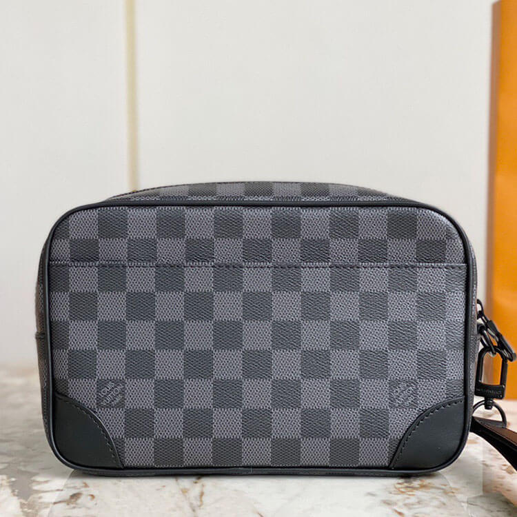 1:1 Mirror QualityReplica LV Pochette KasaiStyle:N6050125 x 15.5 x 6.5 cmDamier Graphite coated canvasCowhide-leather trimTextile liningBlack-color hardwareRemovable wristbandBack zipped pocketDouble inside flat pocketInside flat pocket10 card slots
