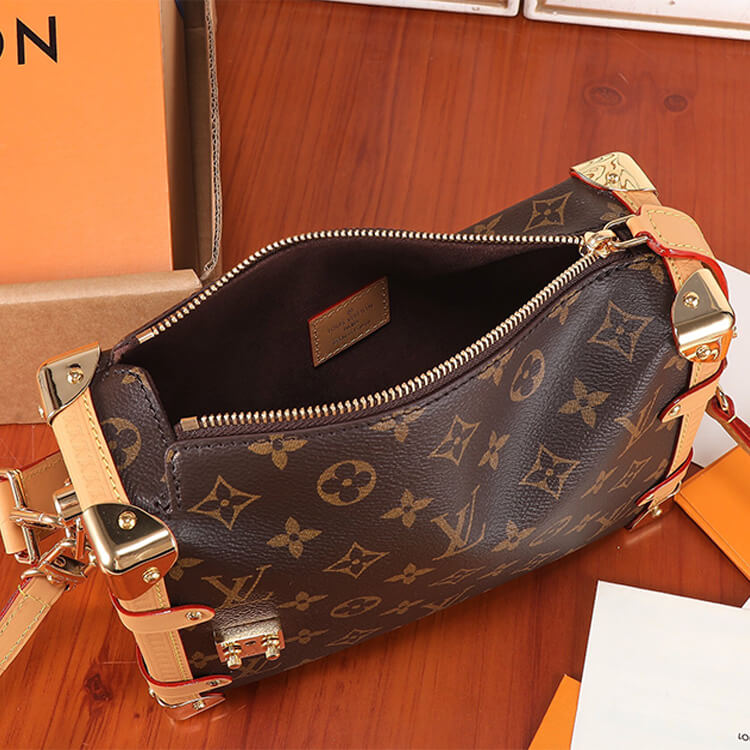 1:1 Mirror Quality Replica LV Side Trunk Style:M46358 21 x 14 x 6 cm Monogram coated canvas Cowhide-leather trim Microfiber lining Gold-color hardware Zip closure with side S-lock Strap: Removable, adjustable Strap drop:53.0 cm Strap drop max:58.0 cm Handle: Single, removable