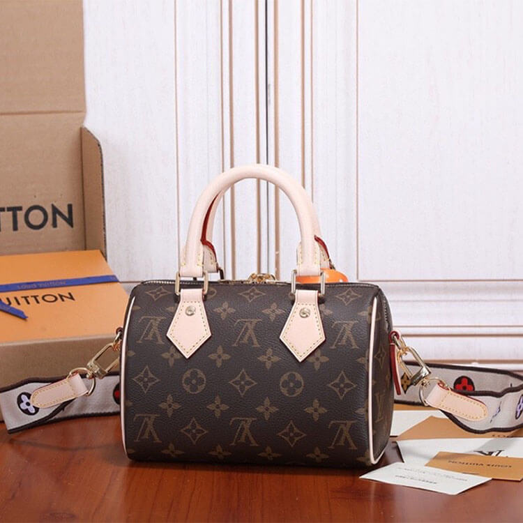 1:1 Mirror QualityReplica LV Speedy Bandouliere 20Style:M45957Size:7.9”W x 5.1”H x 4.7”DBlackMonogram coated canvasTextile liningNatural-cowhide trimGold-color hardwarePadlockInside flat pocketStrap:Removable, not adjustableStrap drop: 19.7 inchesHandle:Double