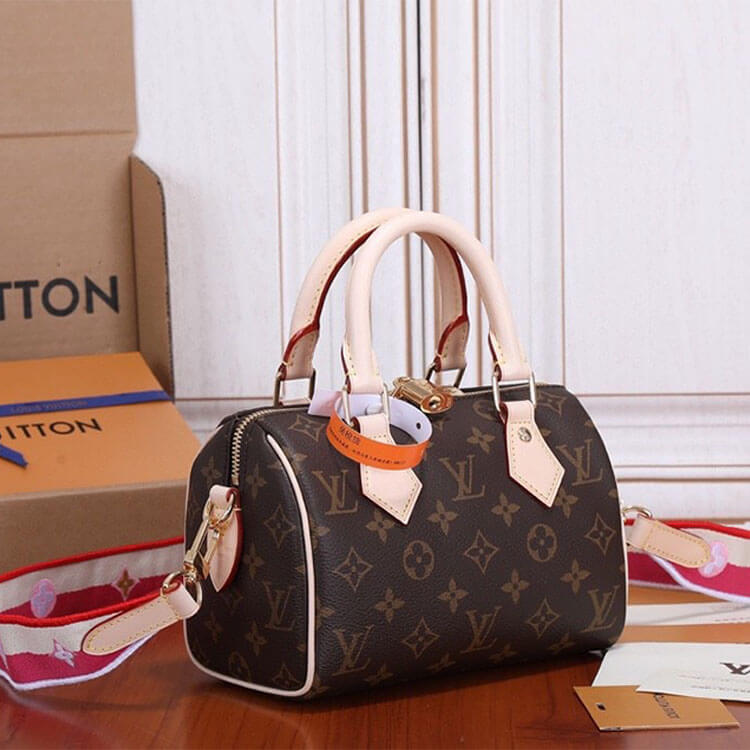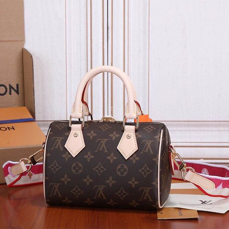 1:1 Mirror QualityReplica LV Speedy Bandouliere 20Style:M45948Size:7.9”W x 5.1”H x 4.7”DFuchsiaMonogram coated canvasTextile liningNatural-cowhide trimGold-color hardwarePadlockInside flat pocketStrap:Removable, not adjustableStrap drop: 19.7 inchesHandle:Double