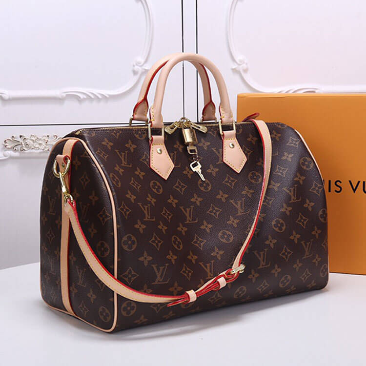 1:1 Mirror QualityReplica LV Speedy Bandouliere 35Style:M41111Size:13.8”W x 9.1”H x 7.1”DMonogram coated canvasSmooth cowhide-leather trimTextile liningGold-color hardwareDouble zipPadlockInside flat pocketStrap:Removable, adjustableStrap drop: 18.5 inchesStrap drop max: 21.1 inchesHandle:Double