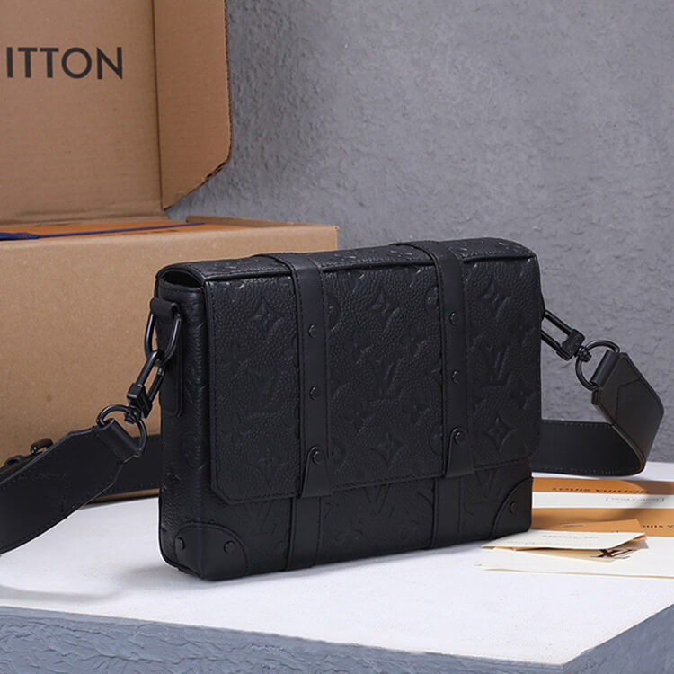 1:1 Mirror QualityReplica LV Trunk MessengerStyle:M57726Size:9.4”W x 7.1”H x 2.2”DTaurillon Monogram leatherTextile liningCowhide-leather trimMatte black hardware1 inside flat pocketMagnetic flap closure systemStrap:Removable, adjustableStrap drop: 18.1 inchesStrap drop max: 20.9 inches