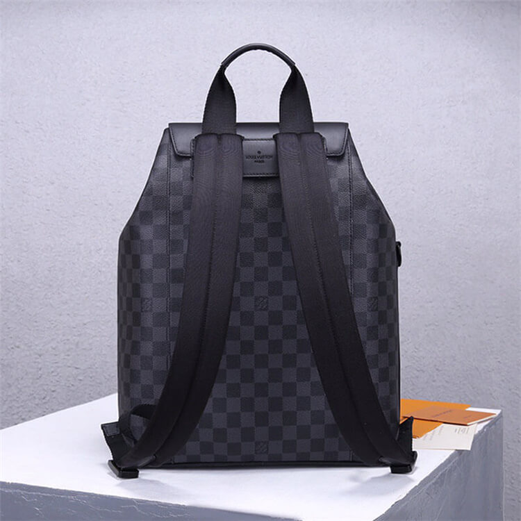 1:1 Mirror Quality Replica LV Utility Backpack Style: N40279 Size: 13”W x 16.1”H x 6.3”D Damier Graphite coated canvas Cowhide leather trim Textile lining Matte-black and red hardware Drawstring closure and front buckle fastener Main compartment 2 external zip pockets 2 inside flat pockets Handle:Single