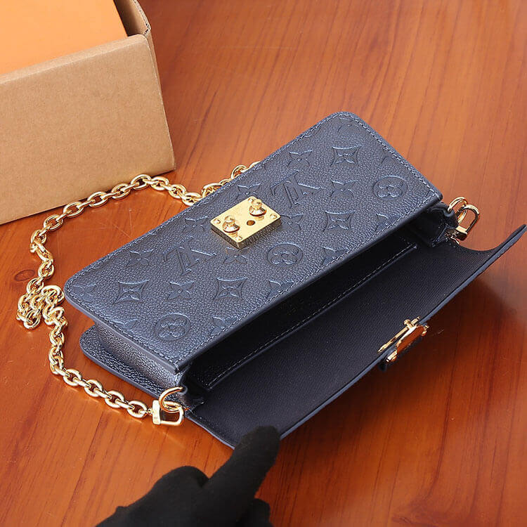 1:1 Mirror QualityReplica LV Wallet On Chain MétisStyle: M826717.5 x 4.3 x 2.2 inches(length x Height x Width)Navy BlueMonogram Empreinte embossed supple grained cowhide leatherTextile liningLight gold-color hardwareS-lock closureInside flat pocketChain:Removable