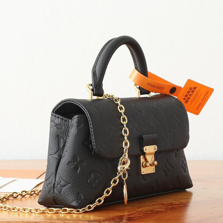 1:1 Mirror QualityReplica LV Nano MadeleineStyle:M1214421 x 12.5 x 6 cm(length x height x width )BlackSupple grained cowhide leatherCowhide-leather trimMicrofiber liningGold-color hardwareFlat pocket with 3 card slotsGusseted compartmentS-lock closureChain : ADJUSTABLE, REMOVABLEHandle : Single