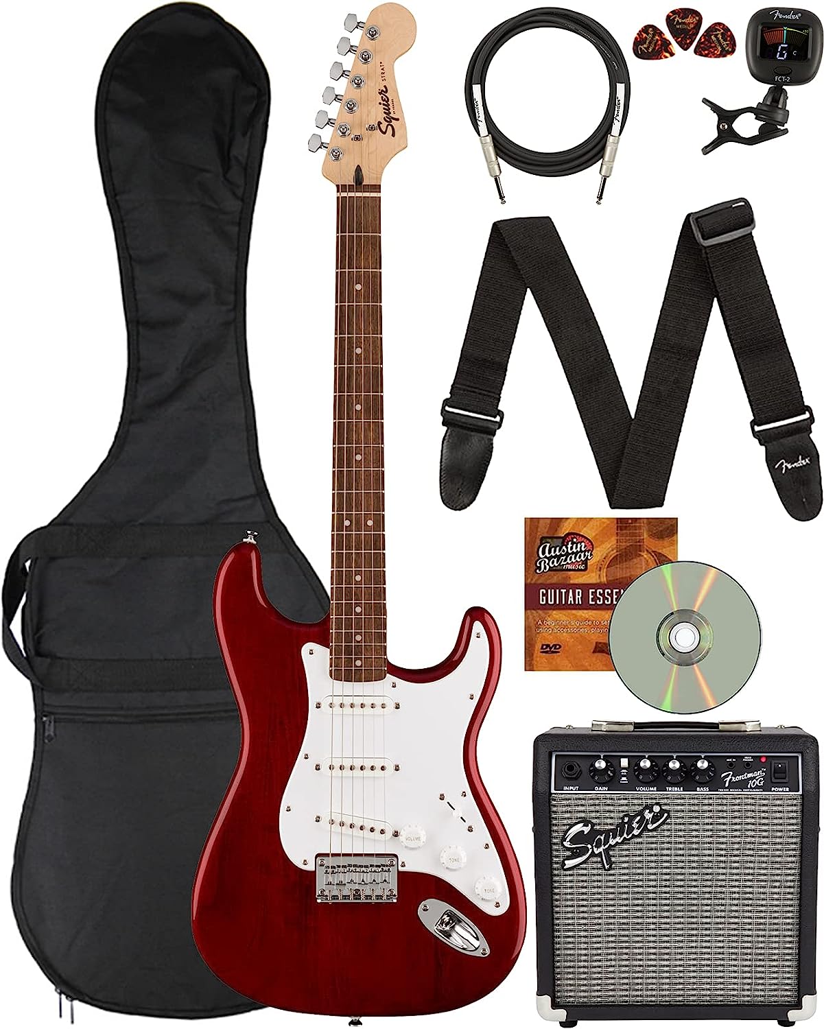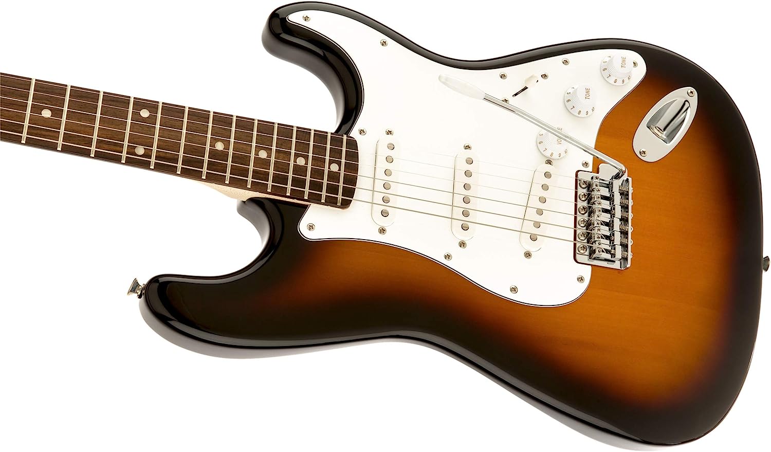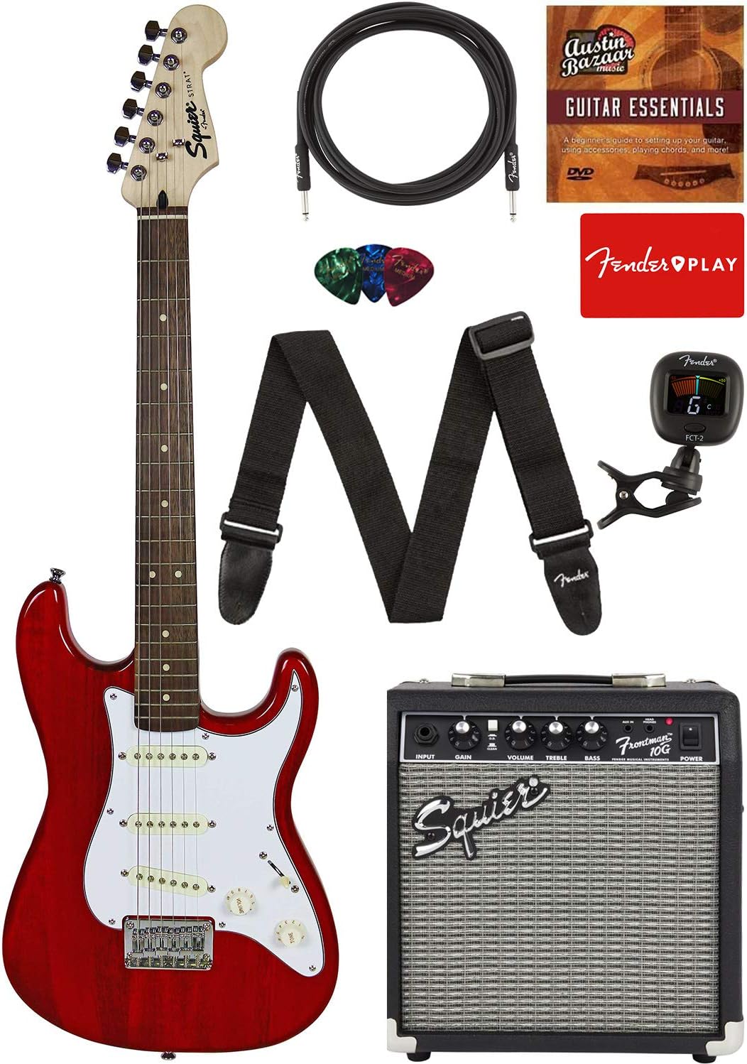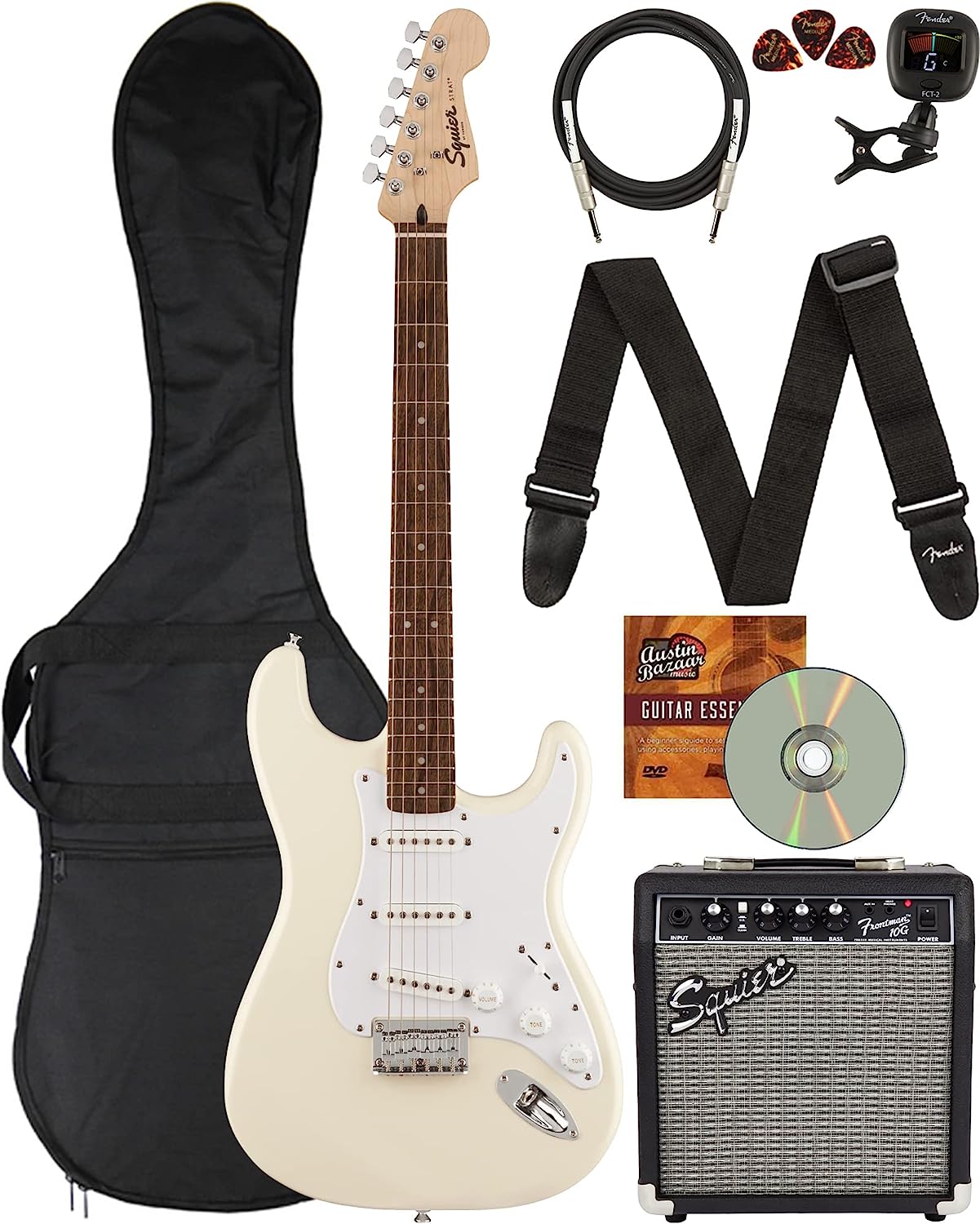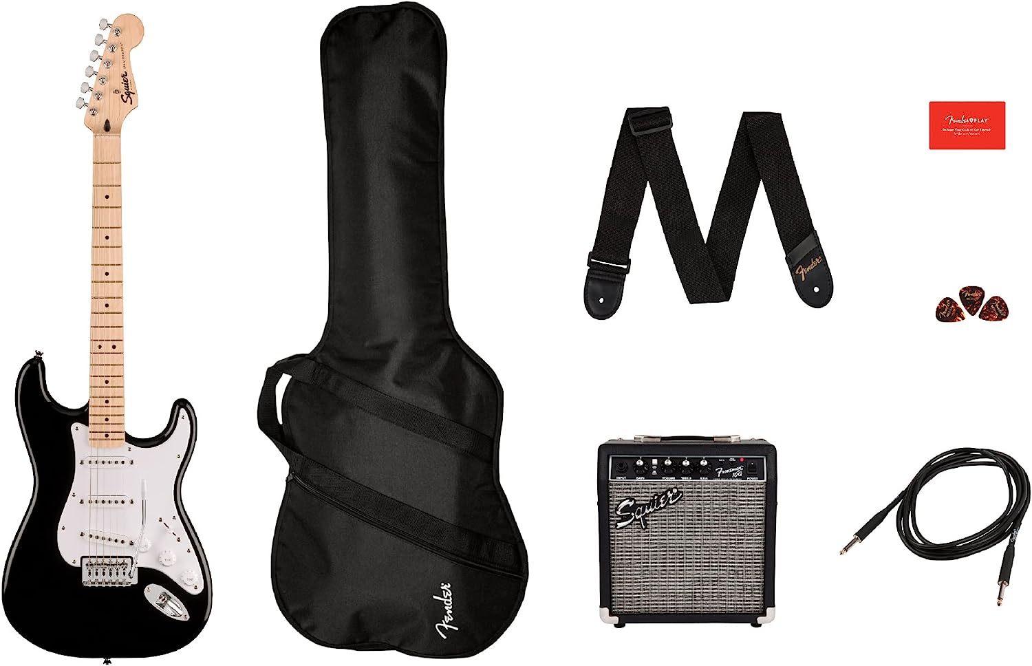 • Fender Squier Stratocaster - Sunburst Bundle with Frontman 10G Amp, Gig Bag, Instrument Cable, Tuner, Strap, Picks, Fender Play Online Lessons, Instructional Book, and Austin Bazaar Instructional DVD
