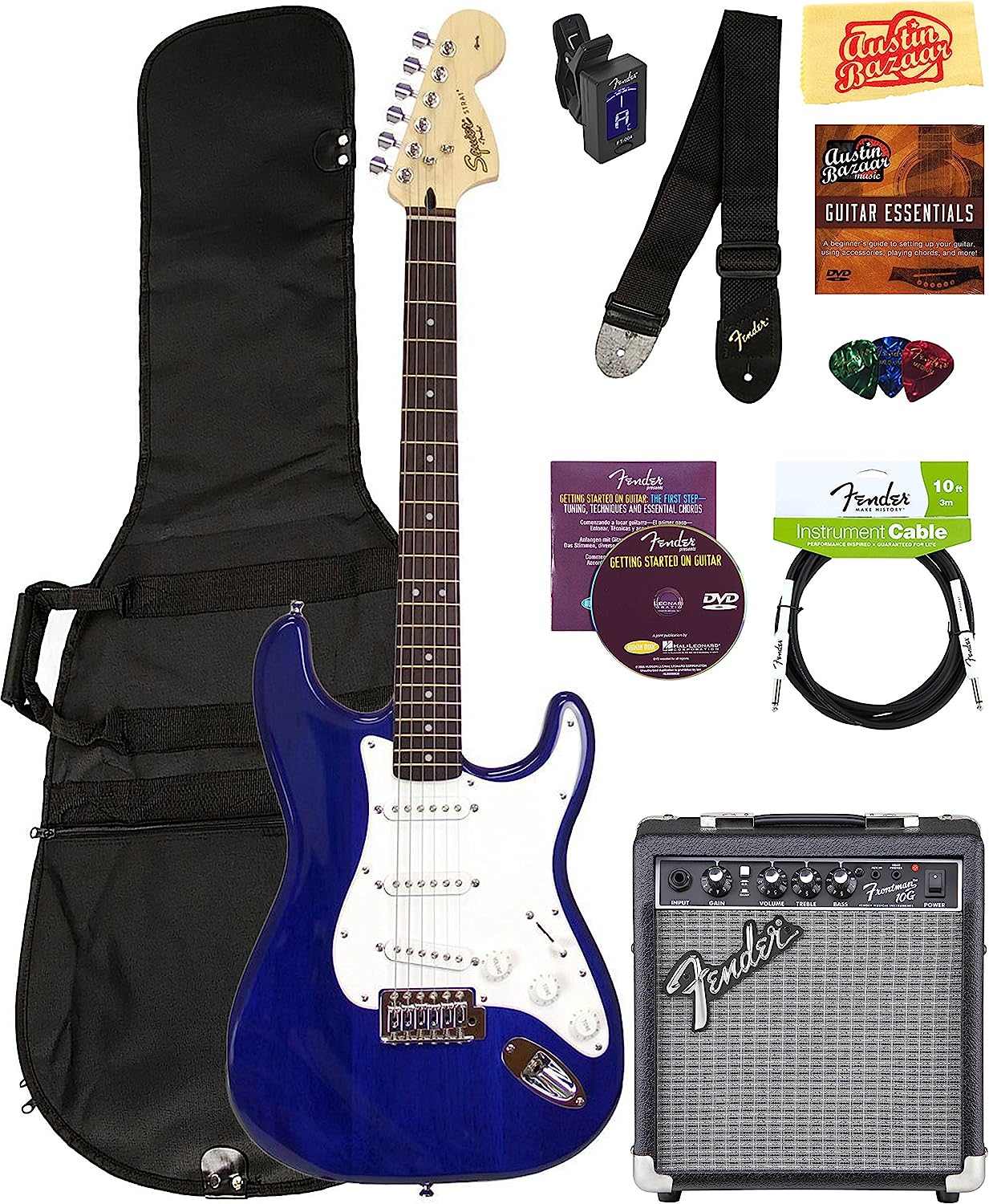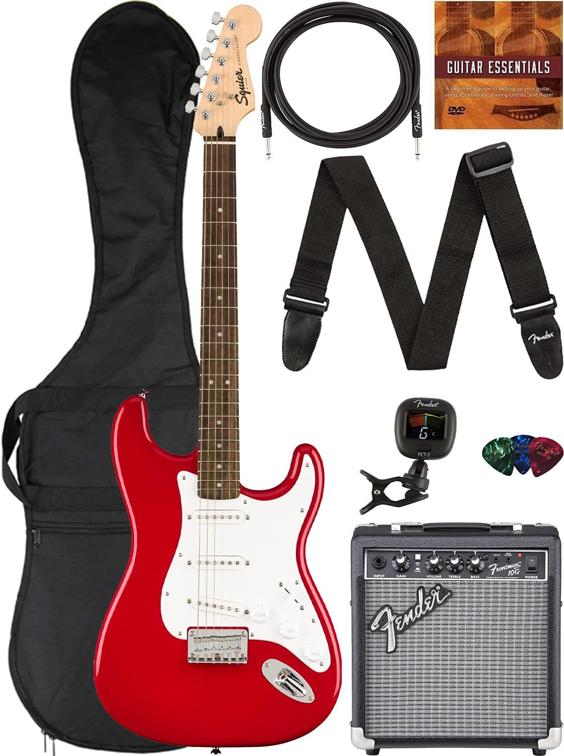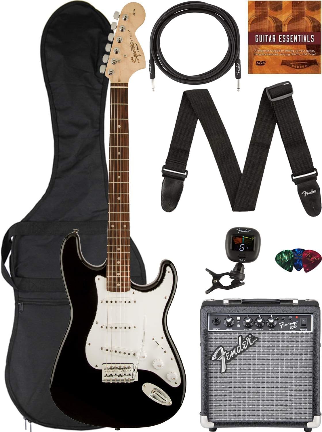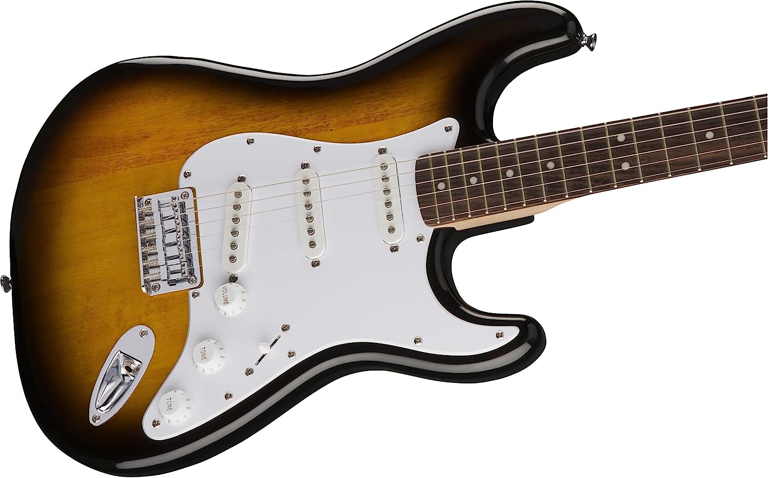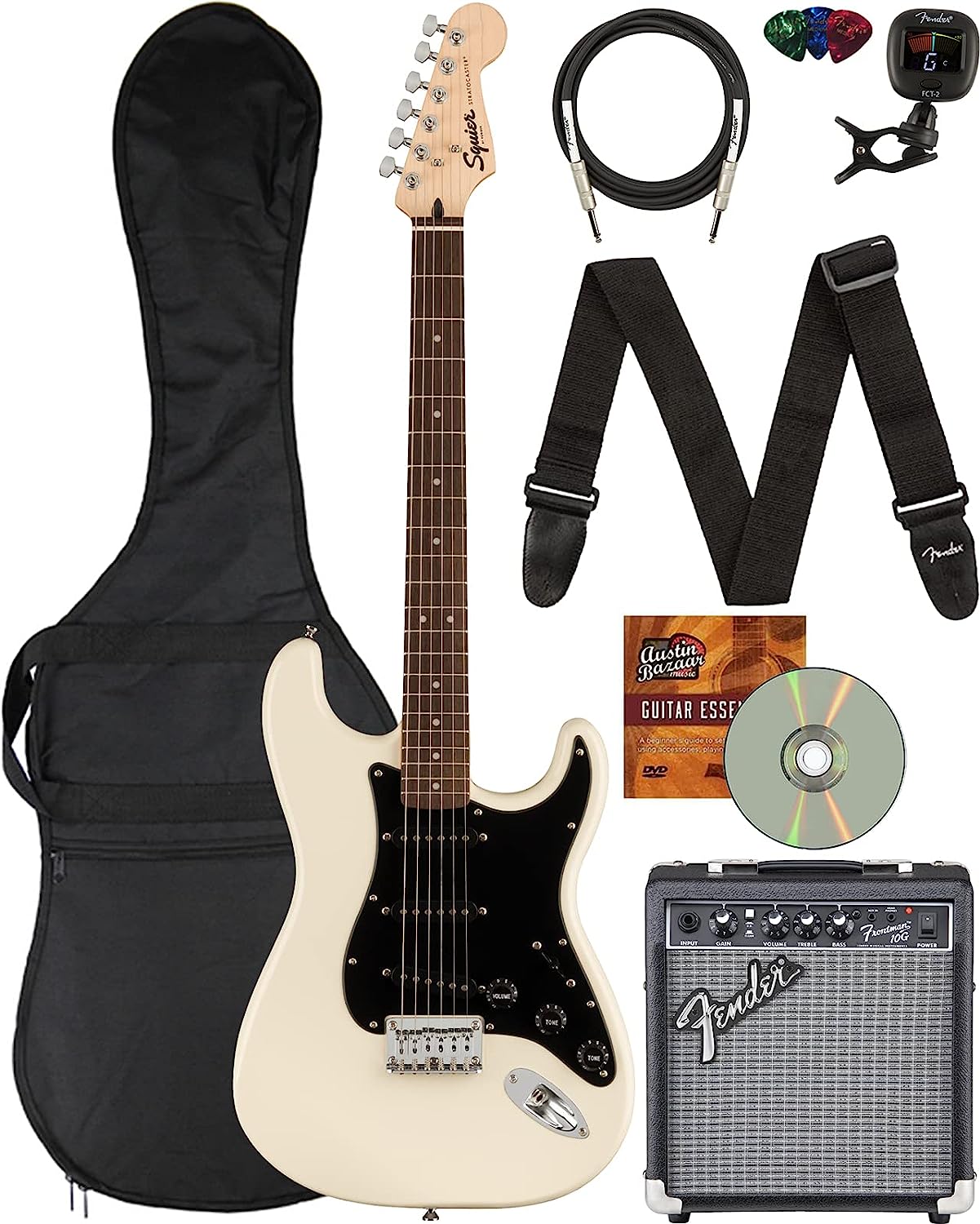 • Fender Squier Stratocaster - Sunburst Bundle with Frontman 10G Amp, Gig Bag, Instrument Cable, Tuner, Strap, Picks, Fender Play Online Lessons, Instructional Book, and Austin Bazaar Instructional DVD