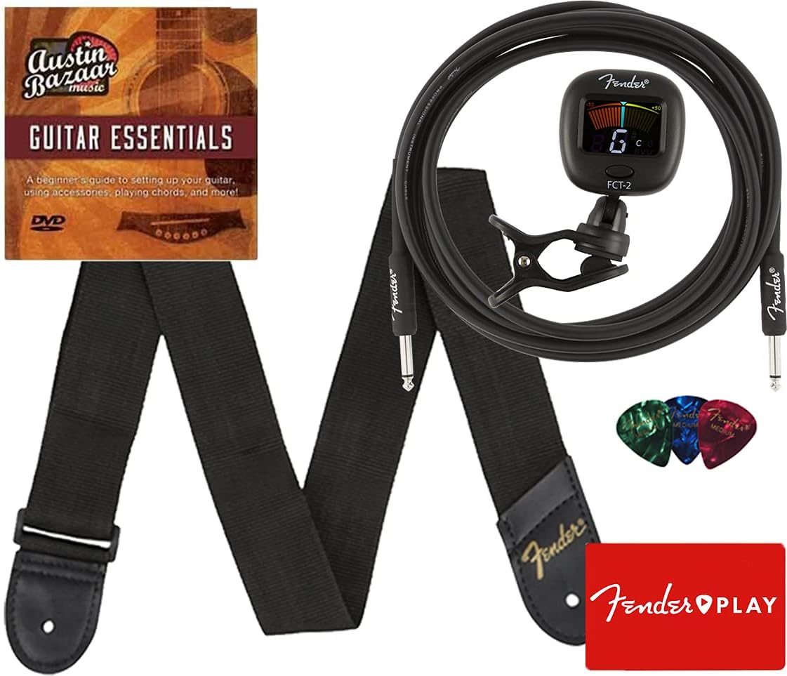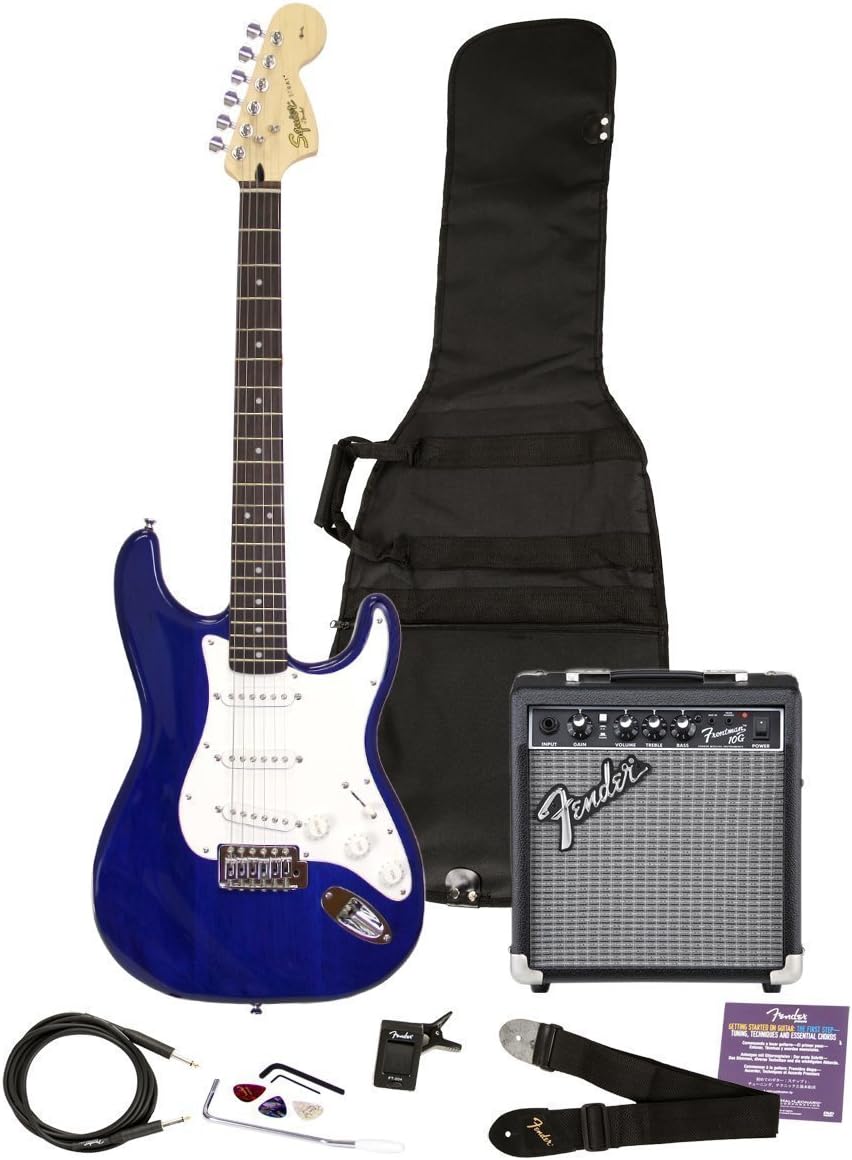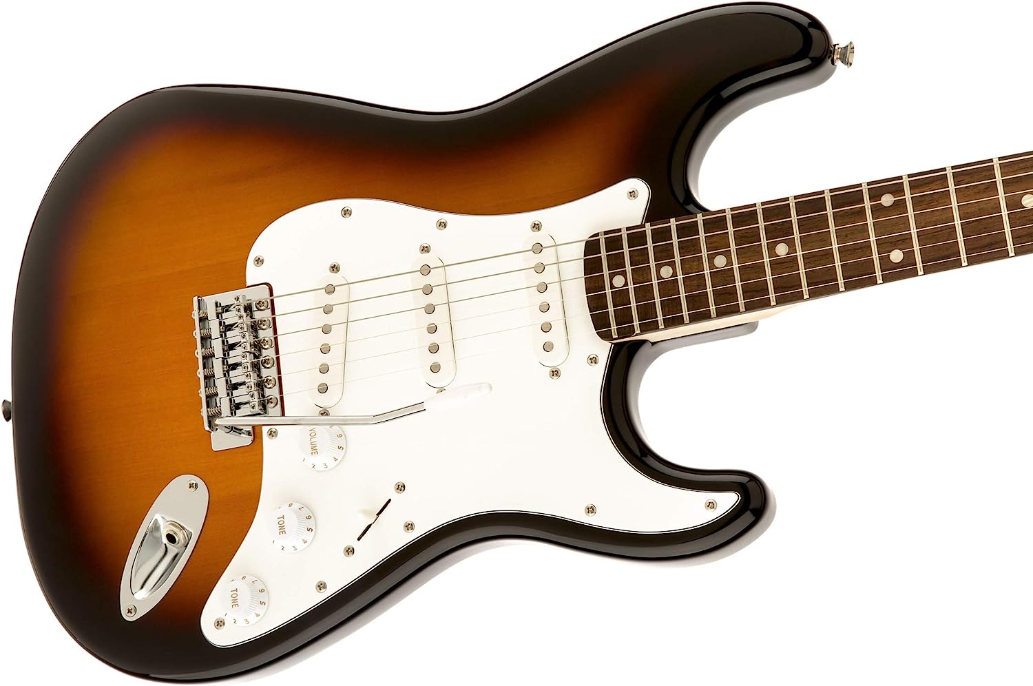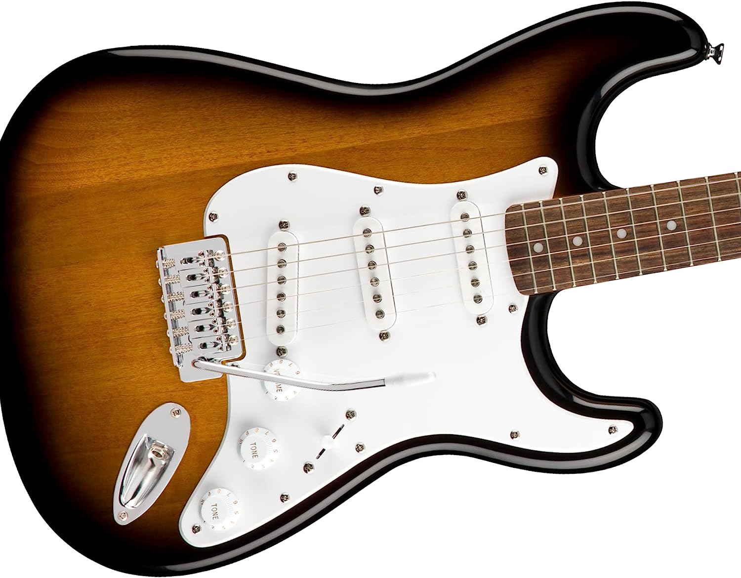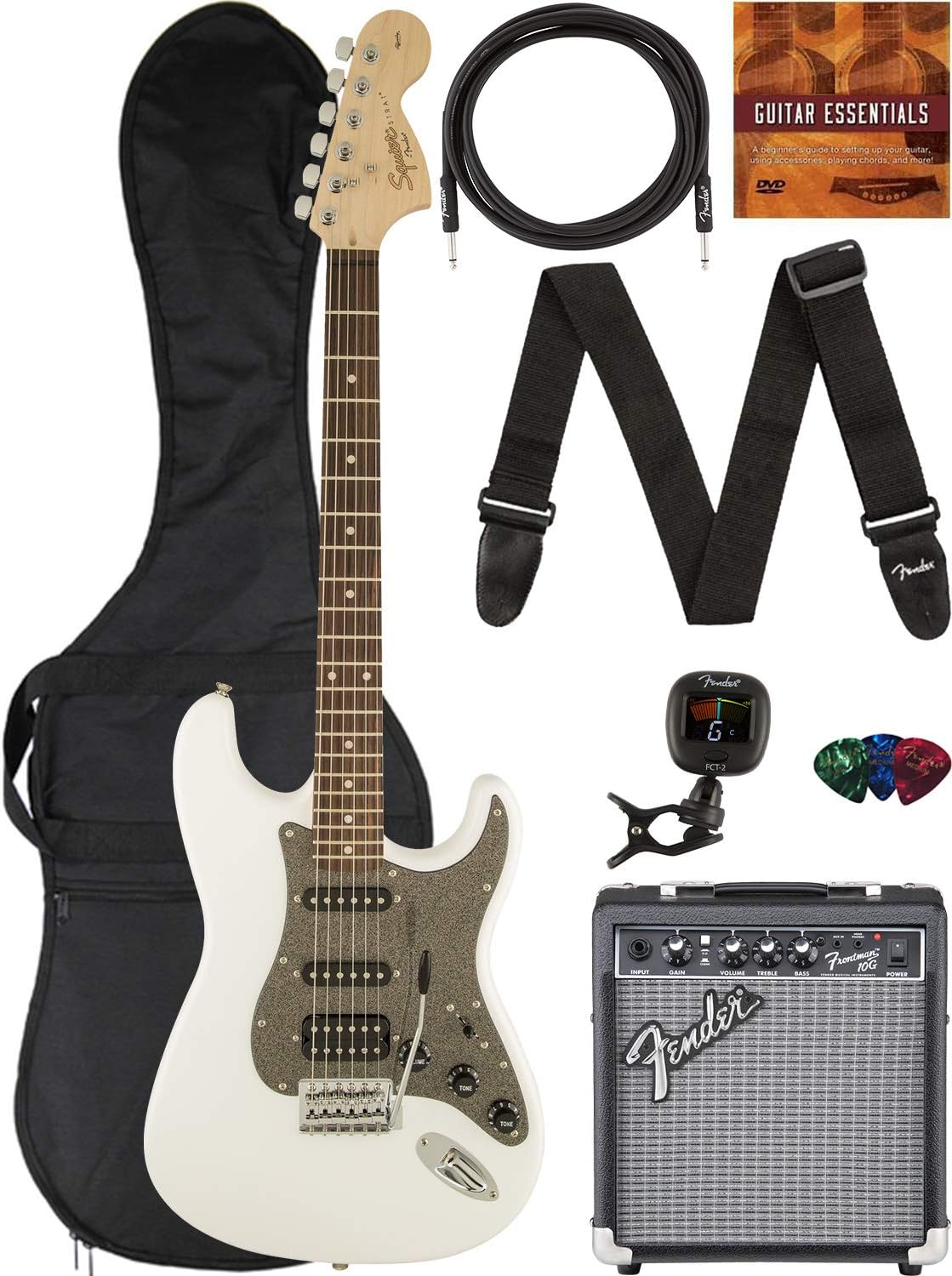• Fender Squier Stratocaster - Sunburst Bundle with Frontman 10G Amp, Gig Bag, Instrument Cable, Tuner, Strap, Picks, Fender Play Online Lessons, Instructional Book, and Austin Bazaar Instructional DVD