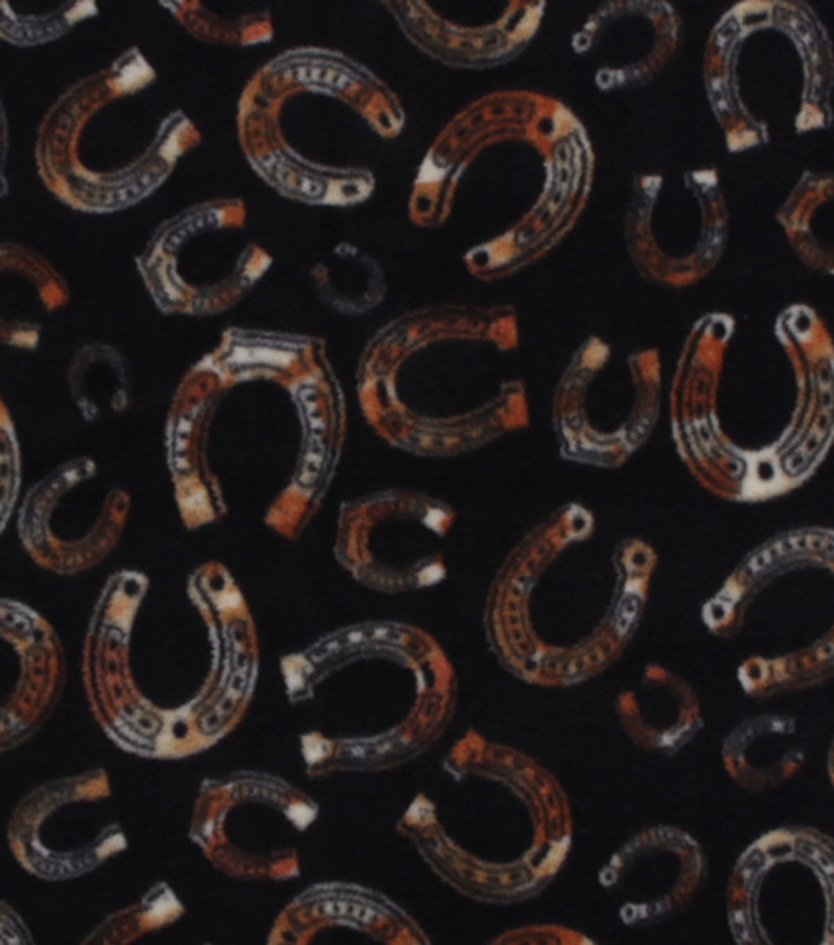 Horseshoes on Black Anti Pill Fleece Fabric