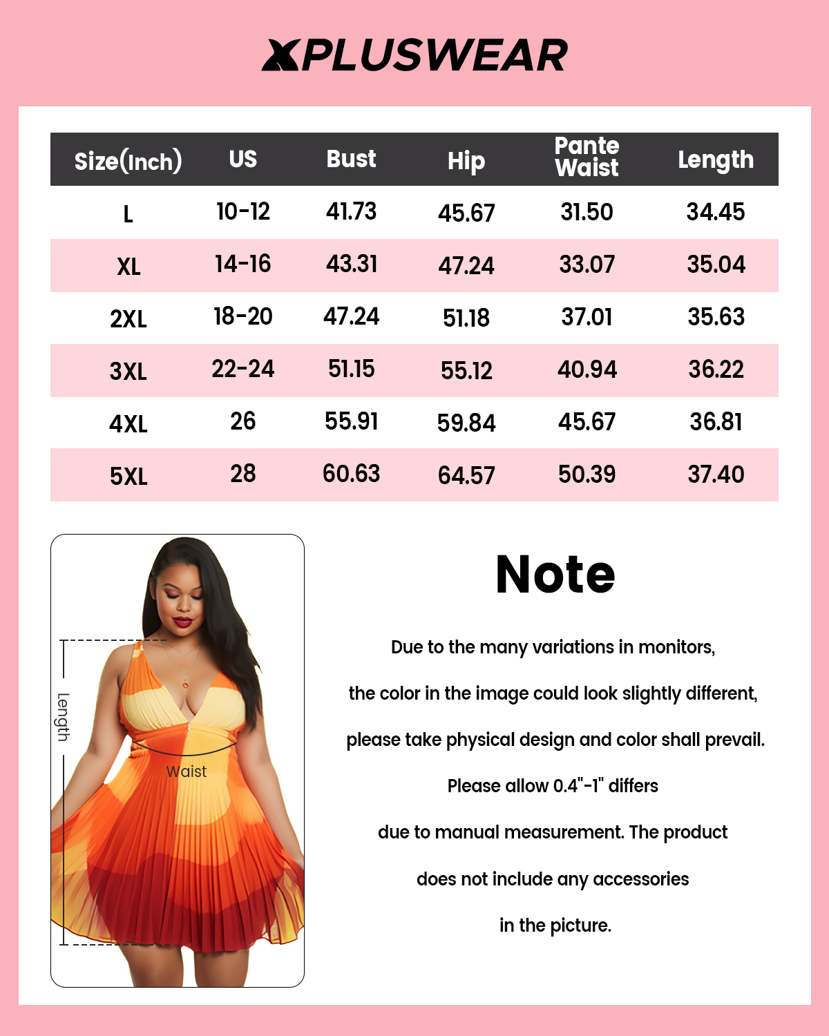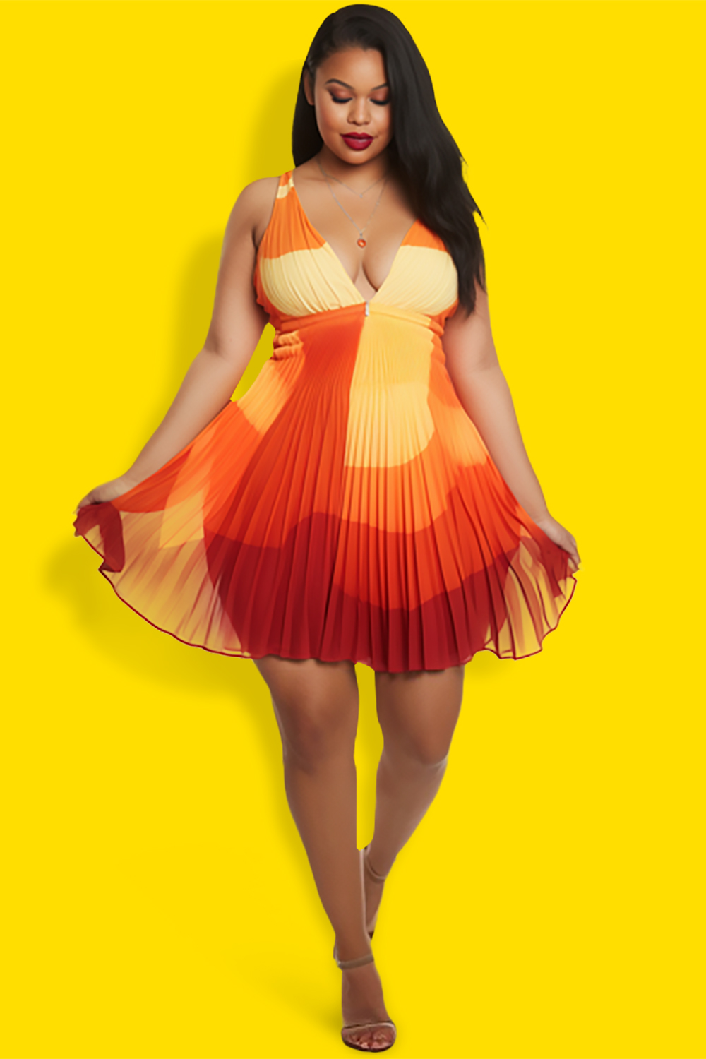 • Xpluswear Design Plus Size Beach Orange Gradient V Neck Pleated Swimsuit Fabric Swimwear Dress With Panty [Pre-Order]