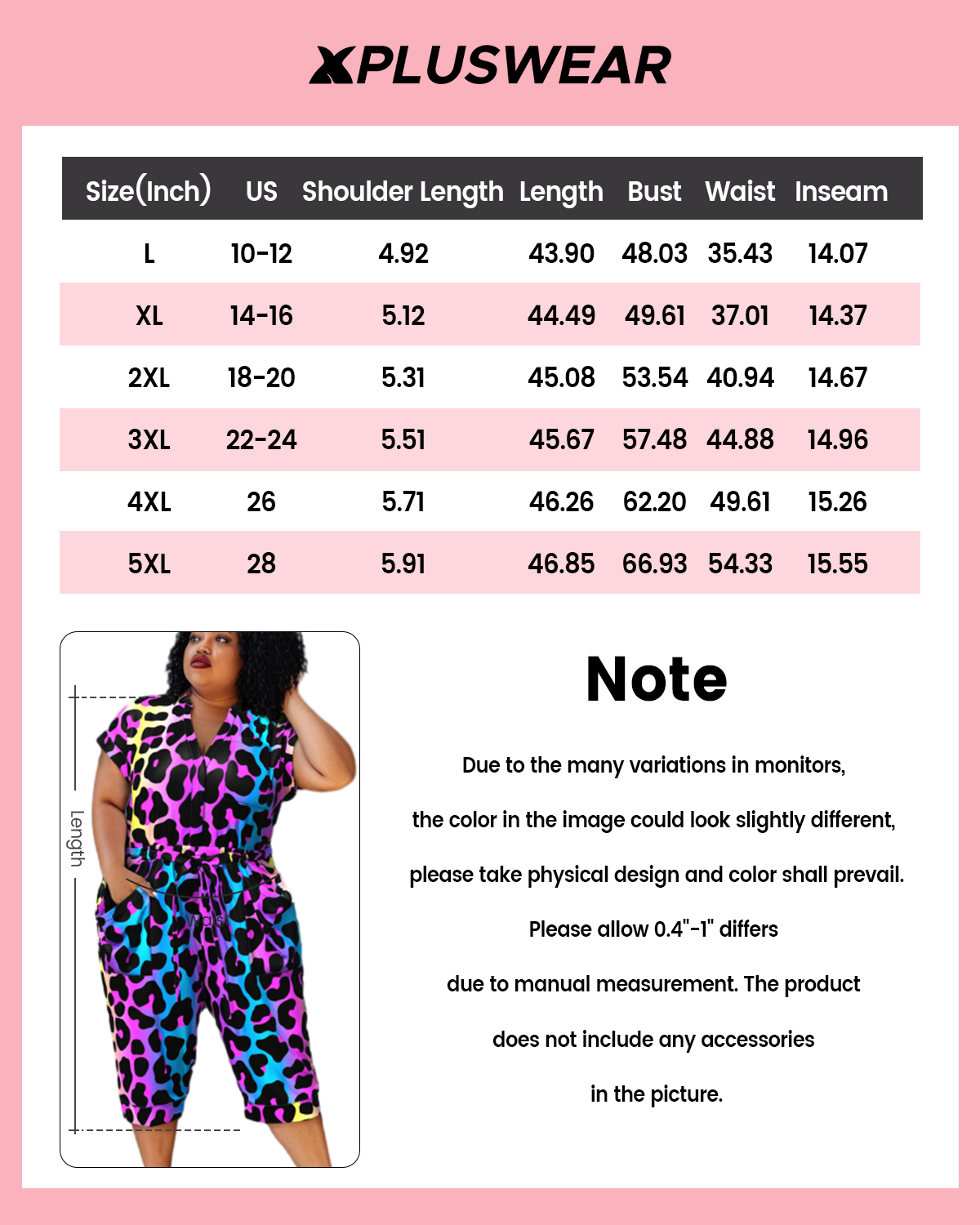 • Xpluswear Design Plus Size Casual Purple Leopard Print V Neck Short Sleeve Pocket Wrap Jumpsuits
