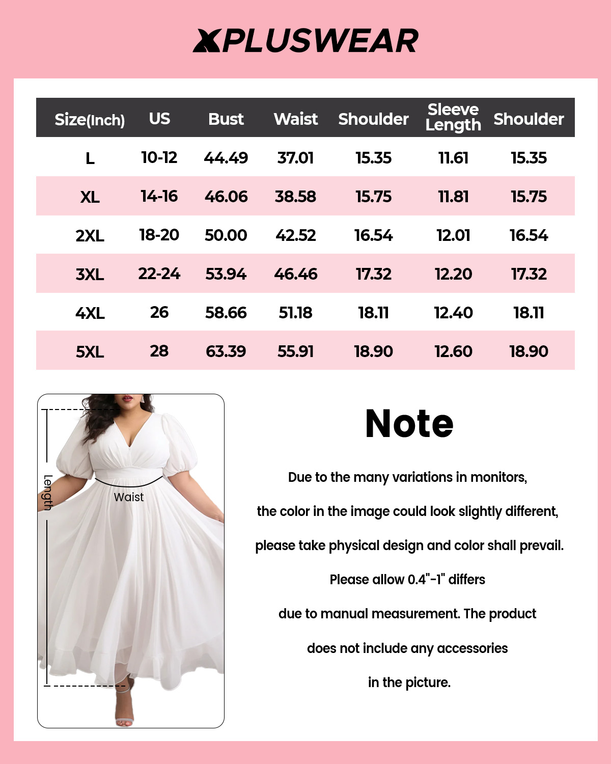 • Xpluswear Design Plus Size Semi Formal Elegant White V Neck Puff Sleeve Short Sleeve Tulle Maxi Dresses