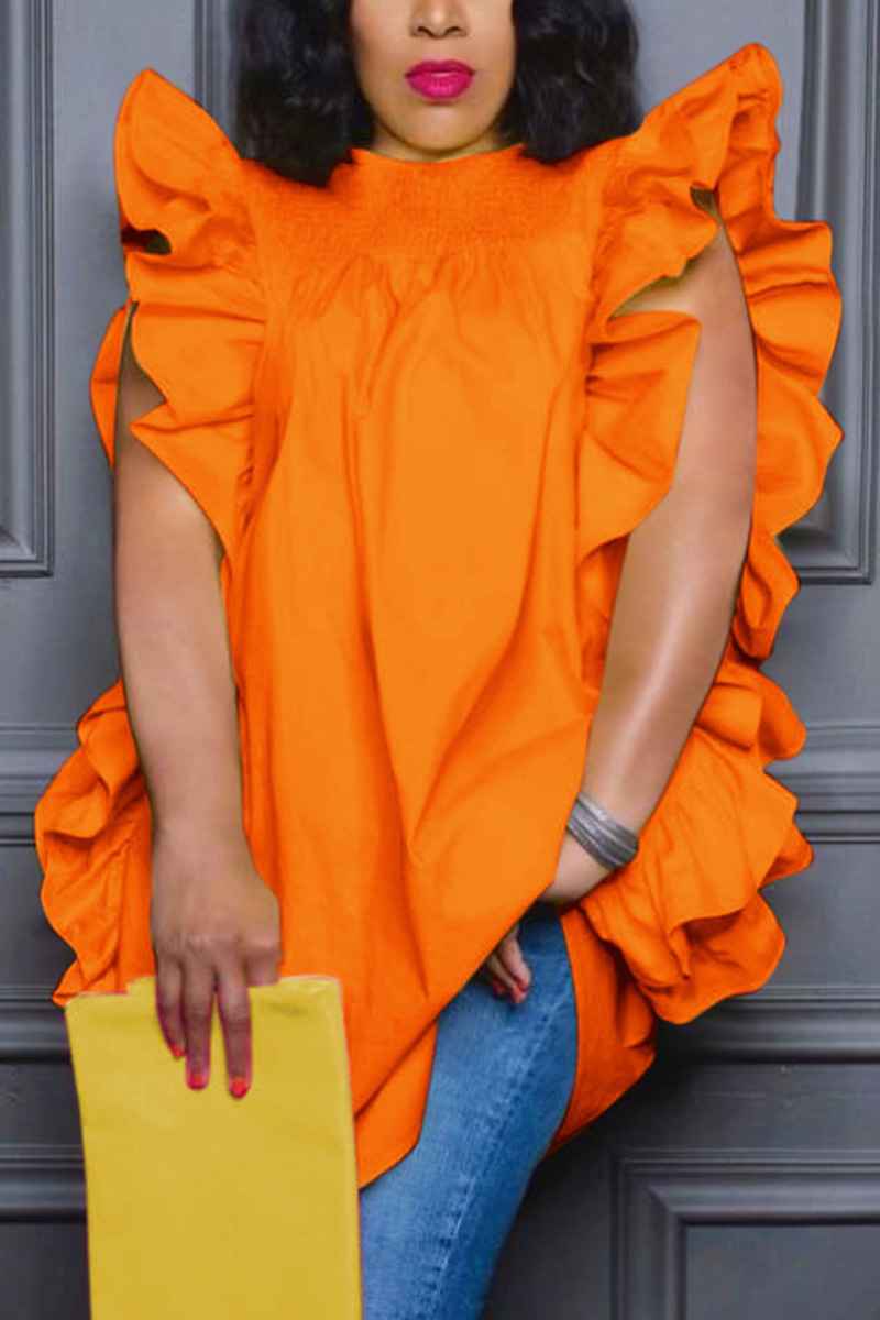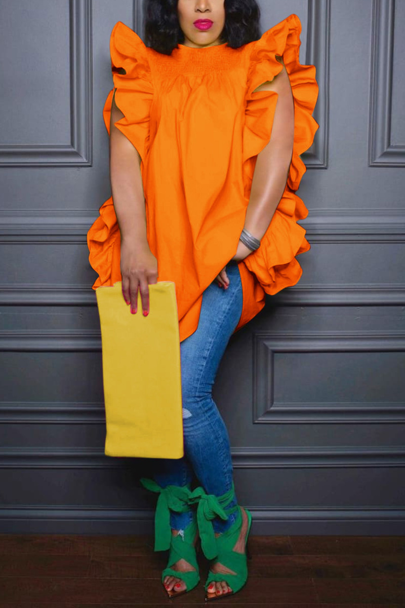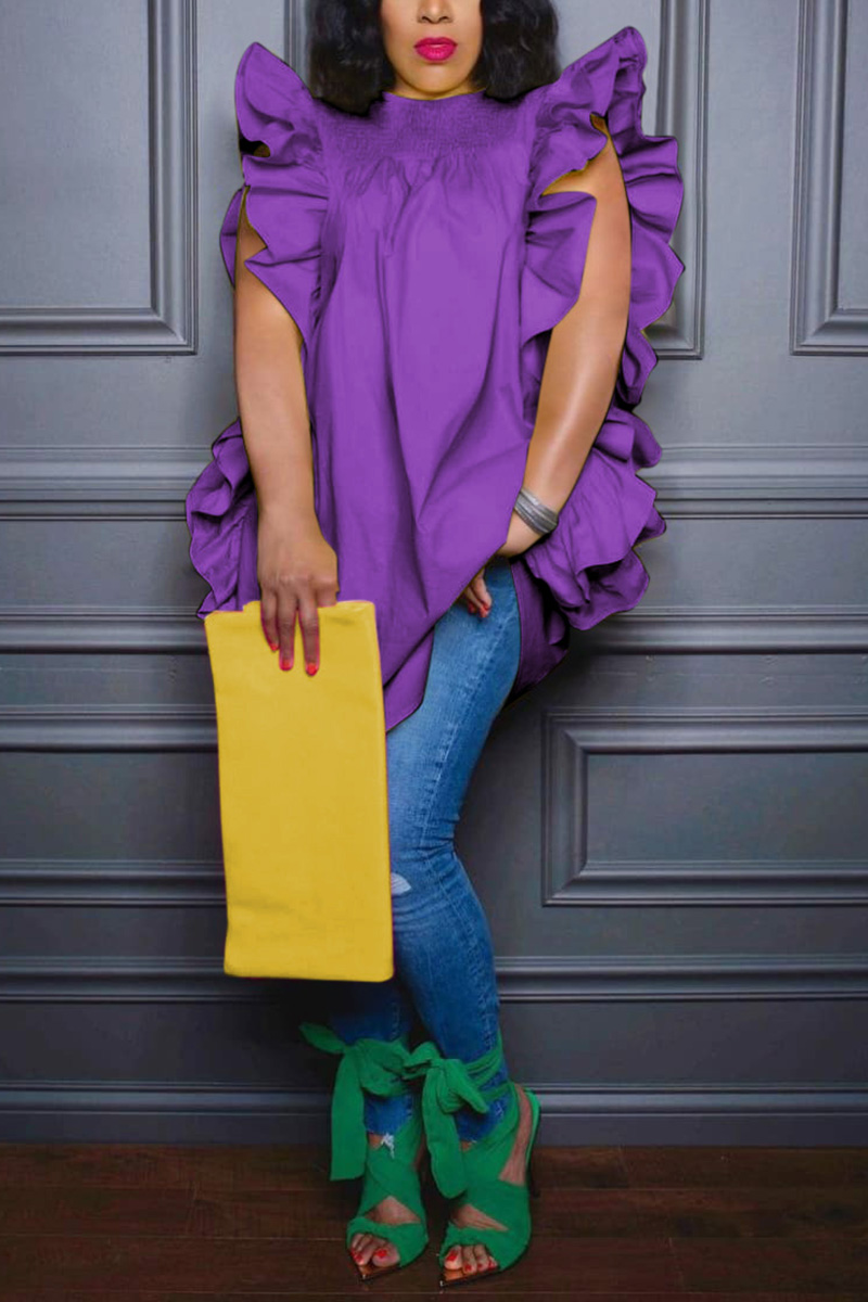 The hot pink blouse withruffle detailingis the perfect choice for making a bold and fashionable statement. Its loose-fitting silhouette ensures comfort, breathability, andunrestricted movement. It effortlessly pairs well with any bottom piece, whether it's jeans, shorts, or leggings. To create a head-turning look for a party, fashion show, or musical festival, you can dress it up with accessories like hoop earrings. Alternatively, for a casual everyday look, simply pair it with flats.