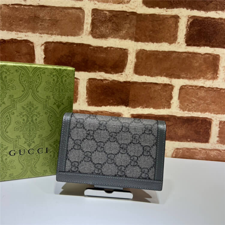1:1 Mirror Quality Replica Gucci Ophidia Passport Case Style:732755 UULBN 1244 Grey and black GG Supreme canvas Grey leather trim Palladium-toned hardware Double G Interior: passport pocket, 3 open pockets, and 3 card slots Closed: 4″W x 5.5″H x 1″D Open: 7.9″W x 5.5″H x 1″D